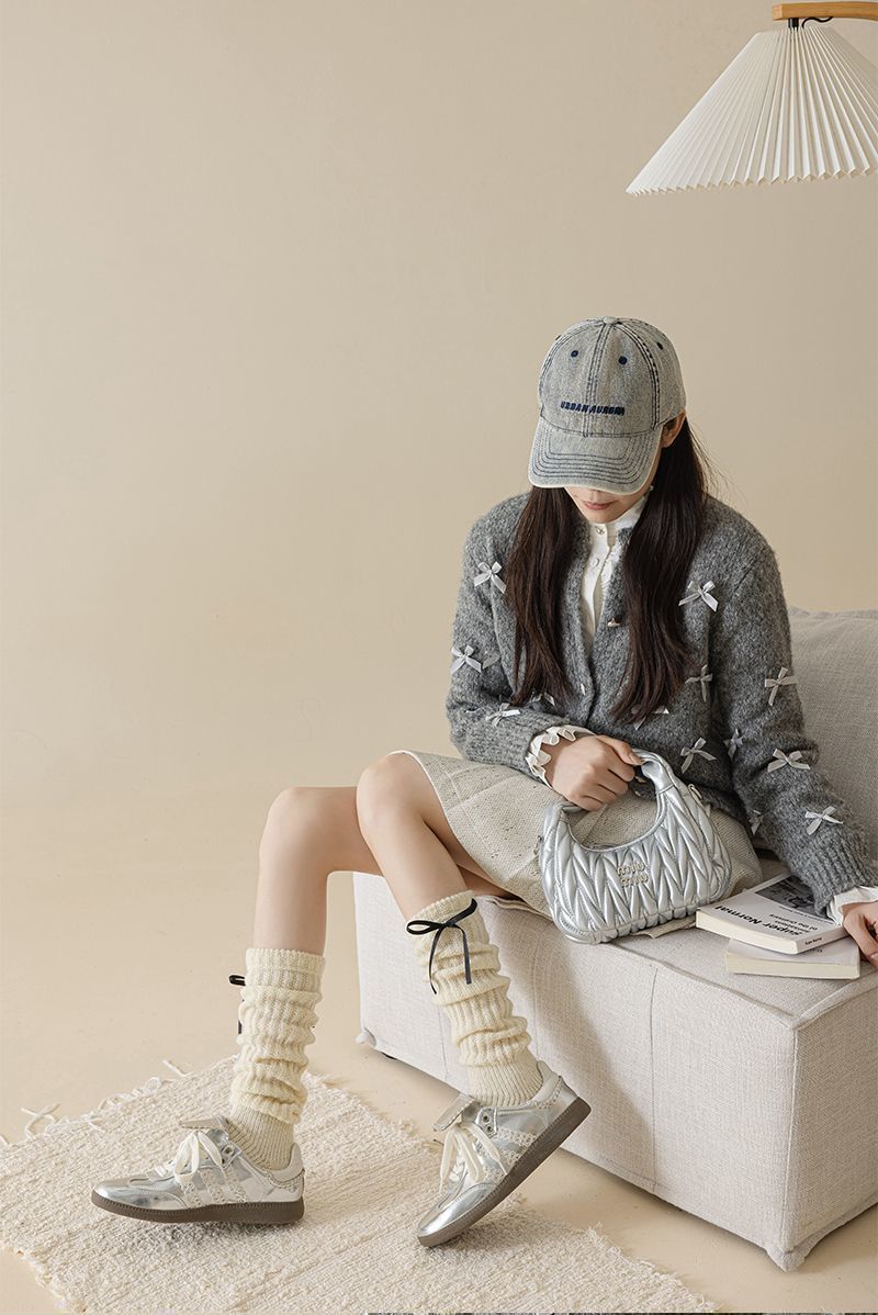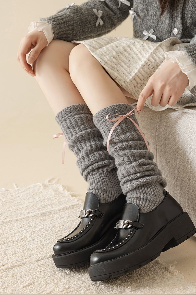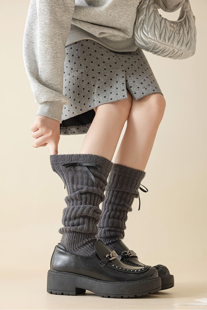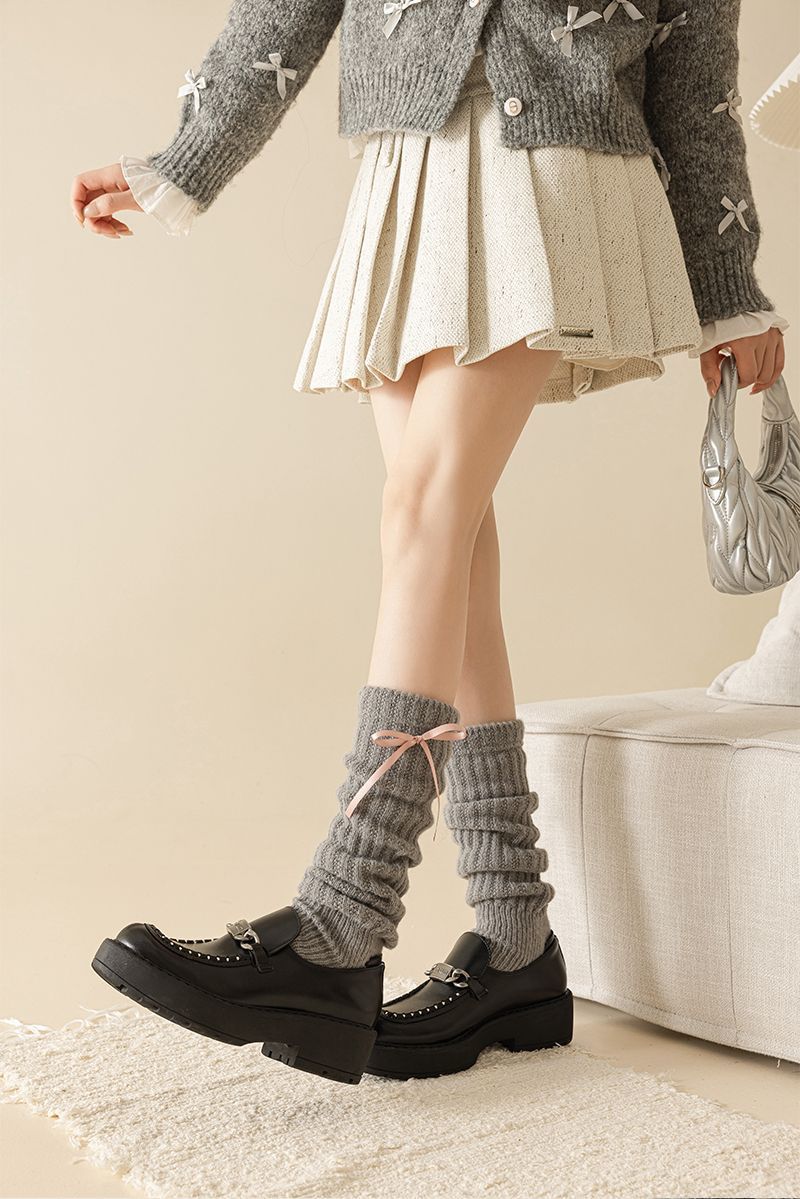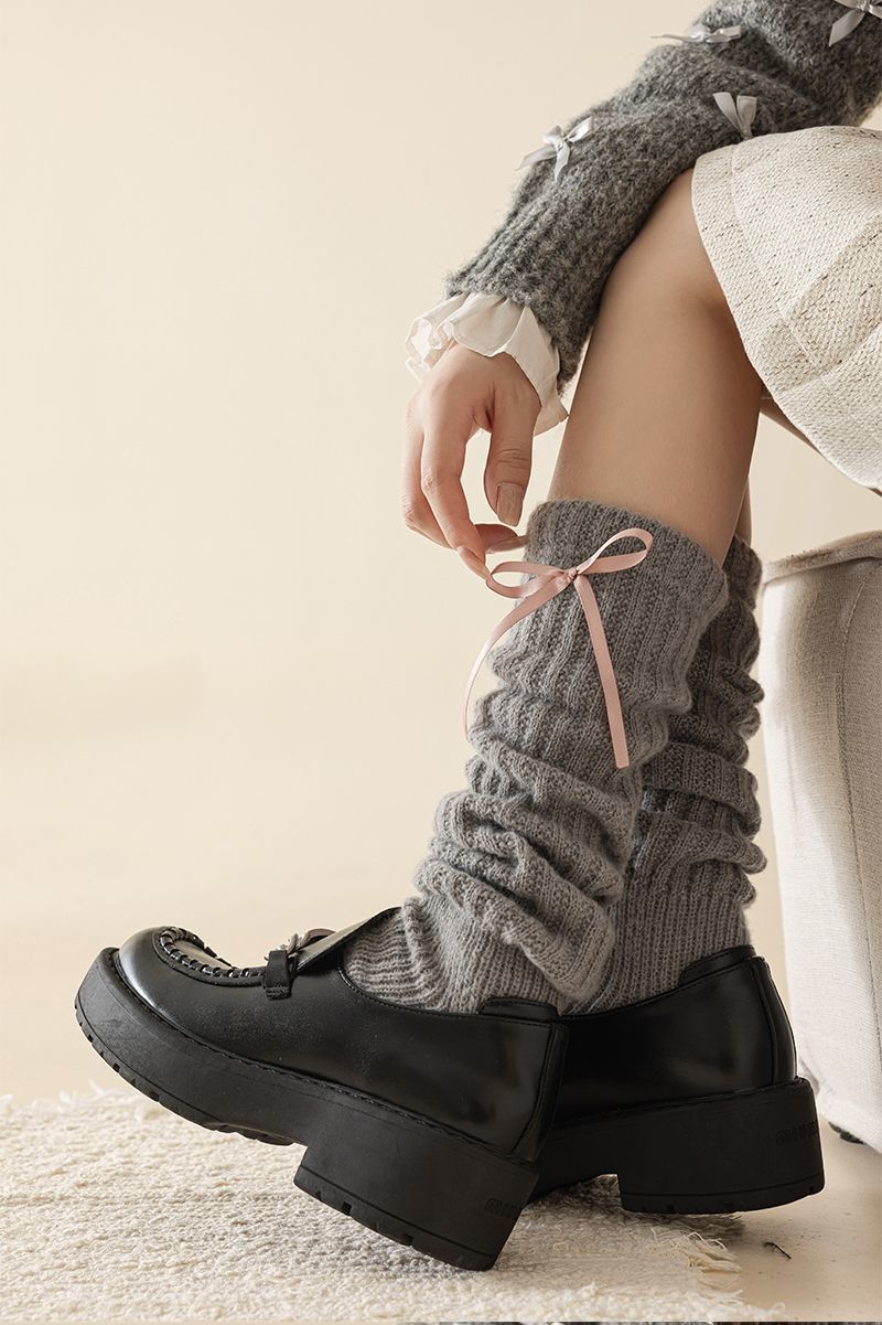 발레 스타일 양말 여성용 발목 양말 가을 겨울 리본 니트 레그 워머 샤크 팬츠와 함께 착용하는 미우 스타일 소녀 도매스토어 가기