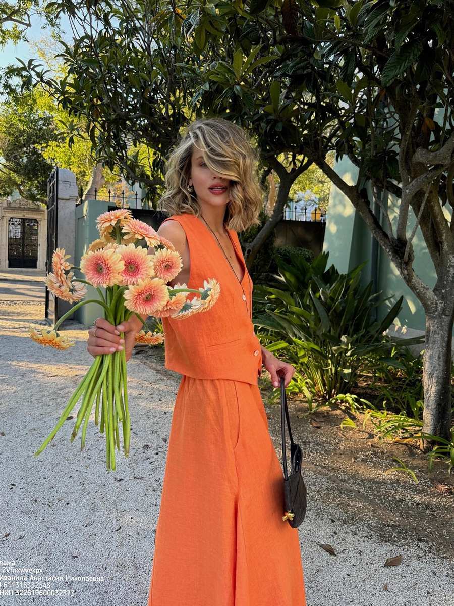 국경 간 면화 및 리넨 조끼 치마 세트 여성 유럽과 미국 2025 여름 새로운 조끼 대형 스윙 스커트 캐주얼 세트
