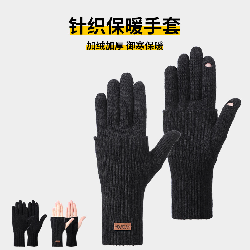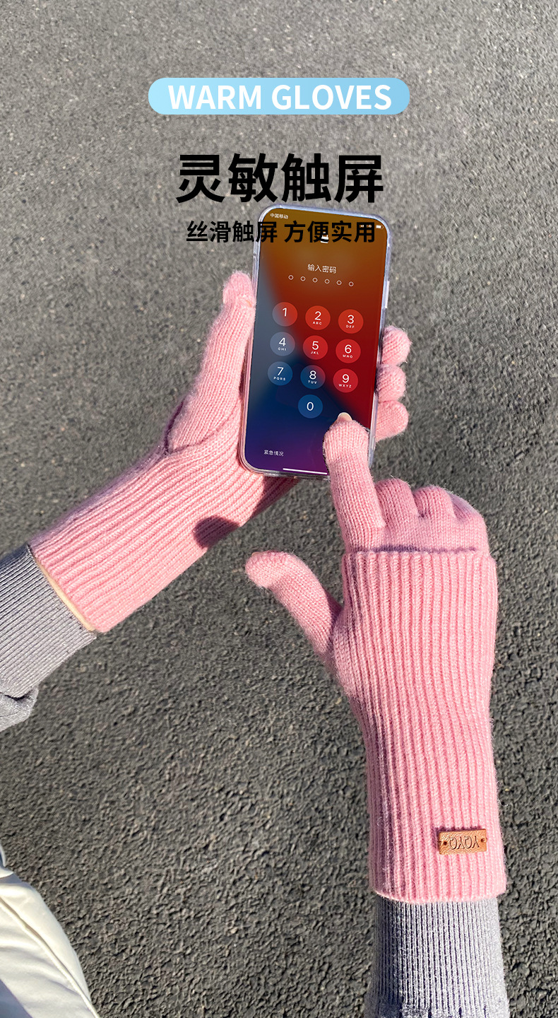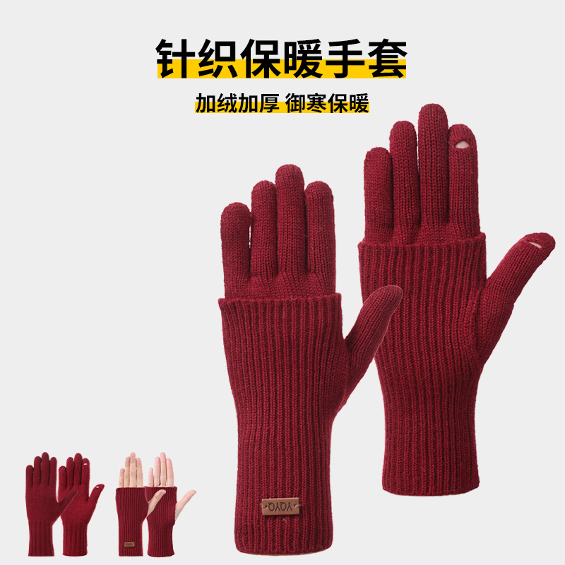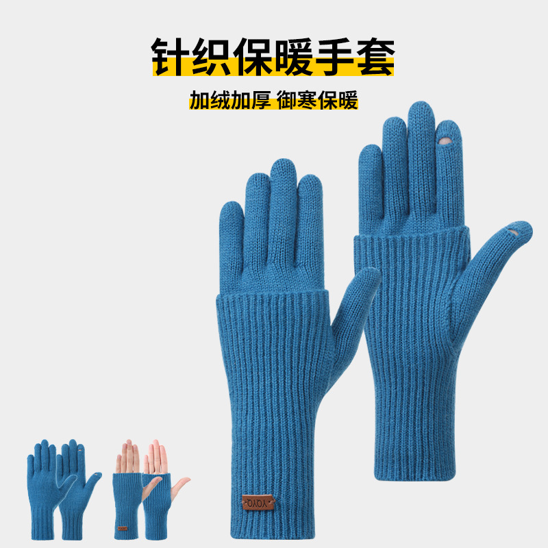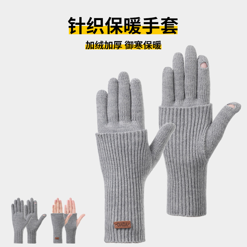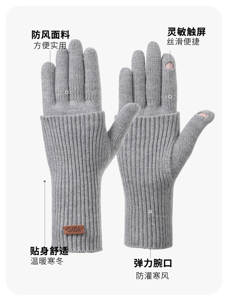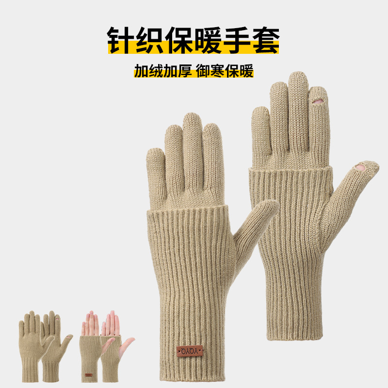 새로운 긴 니트 장갑 여성용 이중 레이어 두 개의 따뜻하고 방한 기능이 있는 터치스크린 사이클링 심플 캐주얼 스타일 모직 장갑
