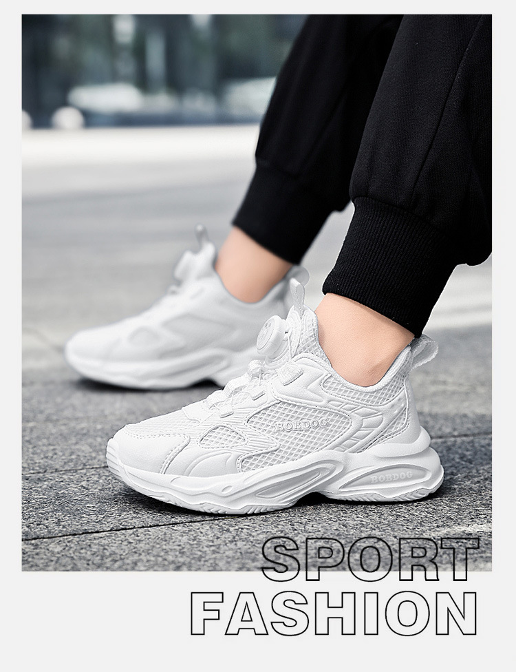바부 콩 어린이 흰색 신발 2025 봄과 가을 새로운 메쉬 통기성 큰 소년과 소녀 흰색 운동화