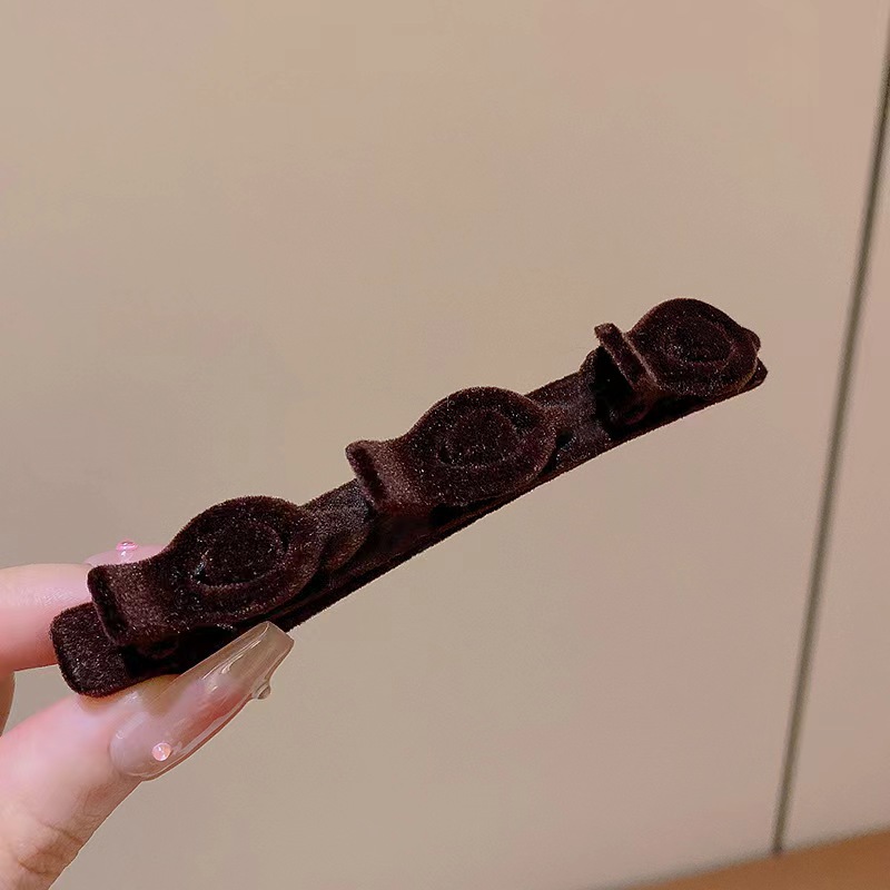• 브라운 플랫 스프레이 페인팅 땋은 머리핀