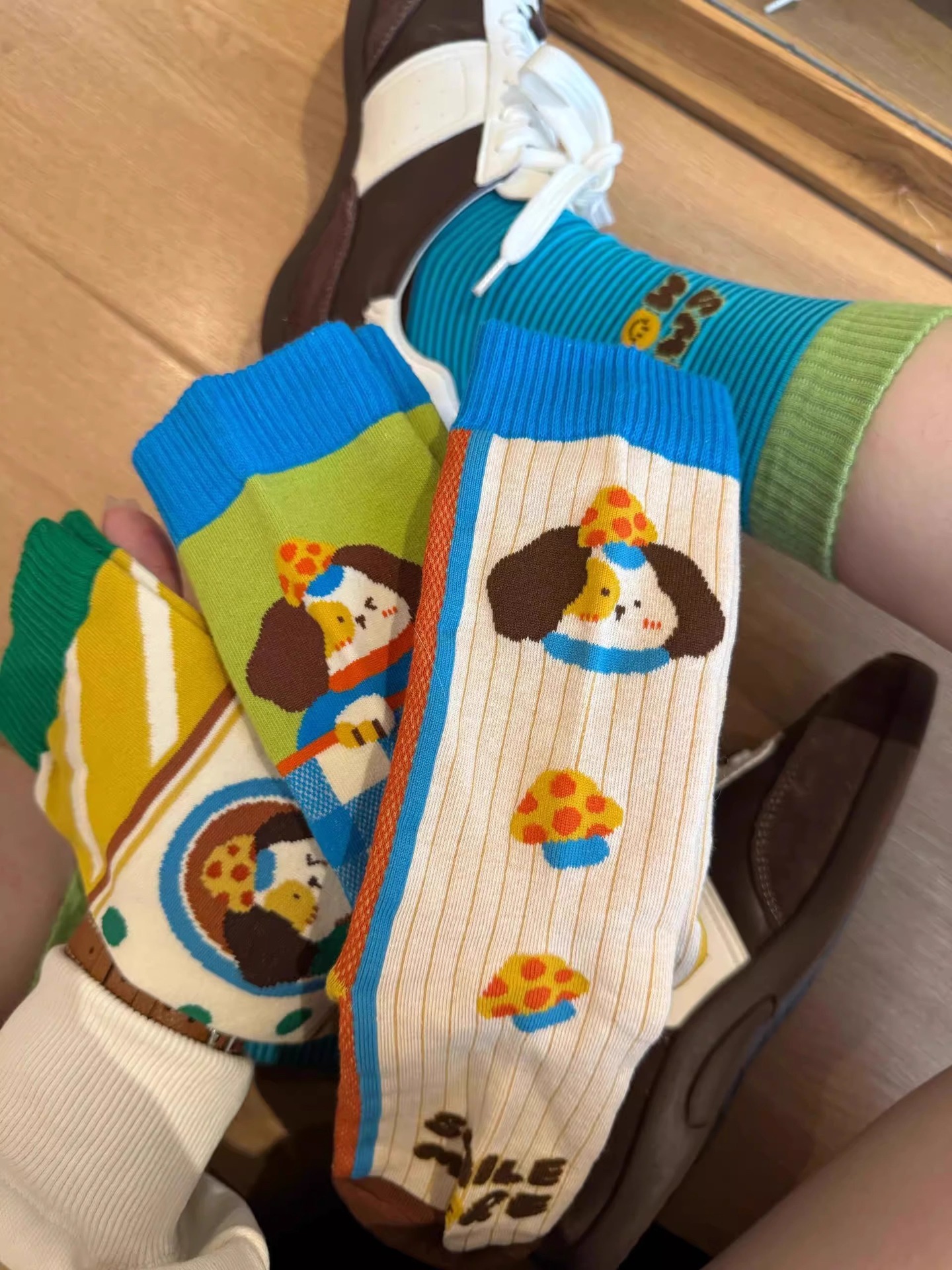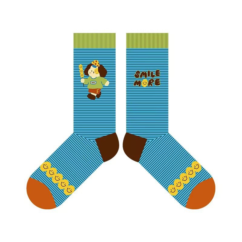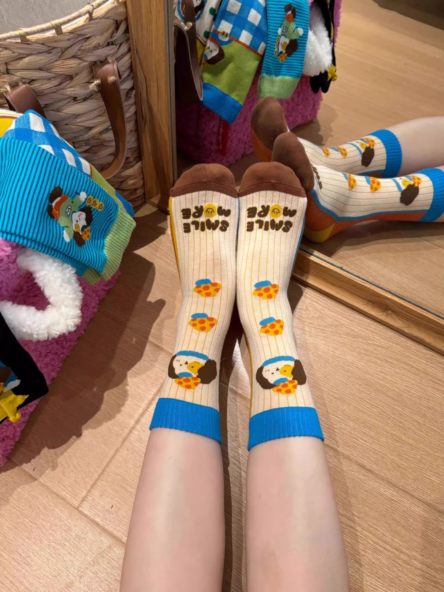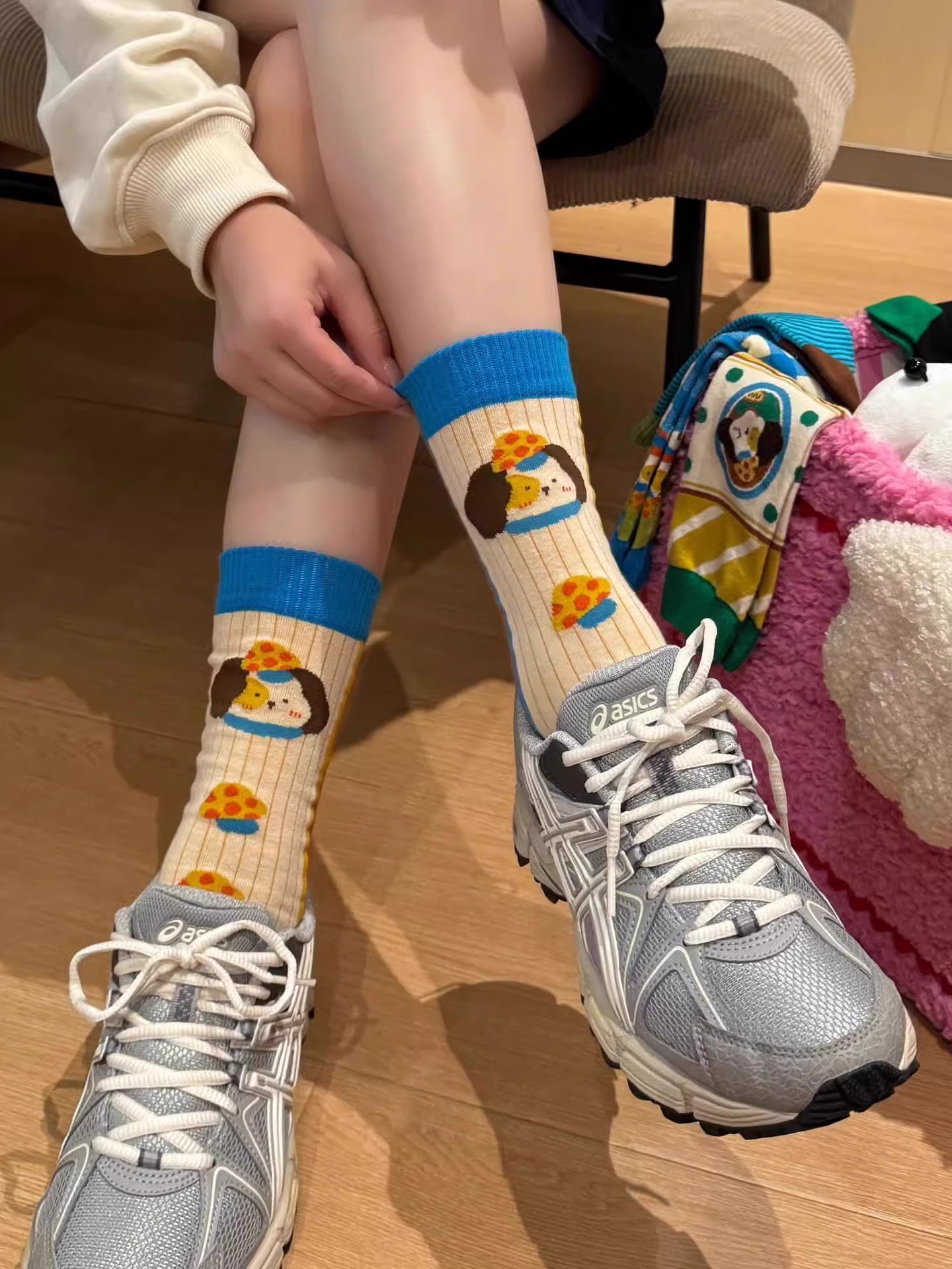 귀여운 재미 강아지 양말 여성의 가을과 겨울 중추절 튜브 양말 Ins 트렌디 한 인터넷 연예인 디자인 대조 컬러 소녀 일본 만화
