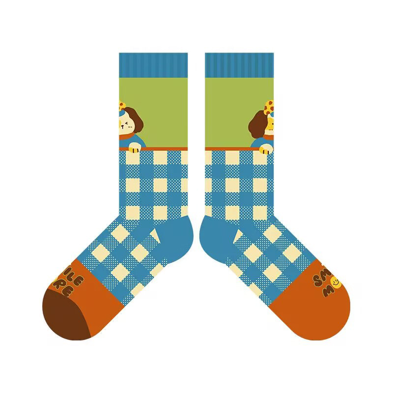 귀여운 재미 강아지 양말 여성의 가을과 겨울 중추절 튜브 양말 Ins 트렌디 한 인터넷 연예인 디자인 대조 컬러 소녀 일본 만화스토어 가기