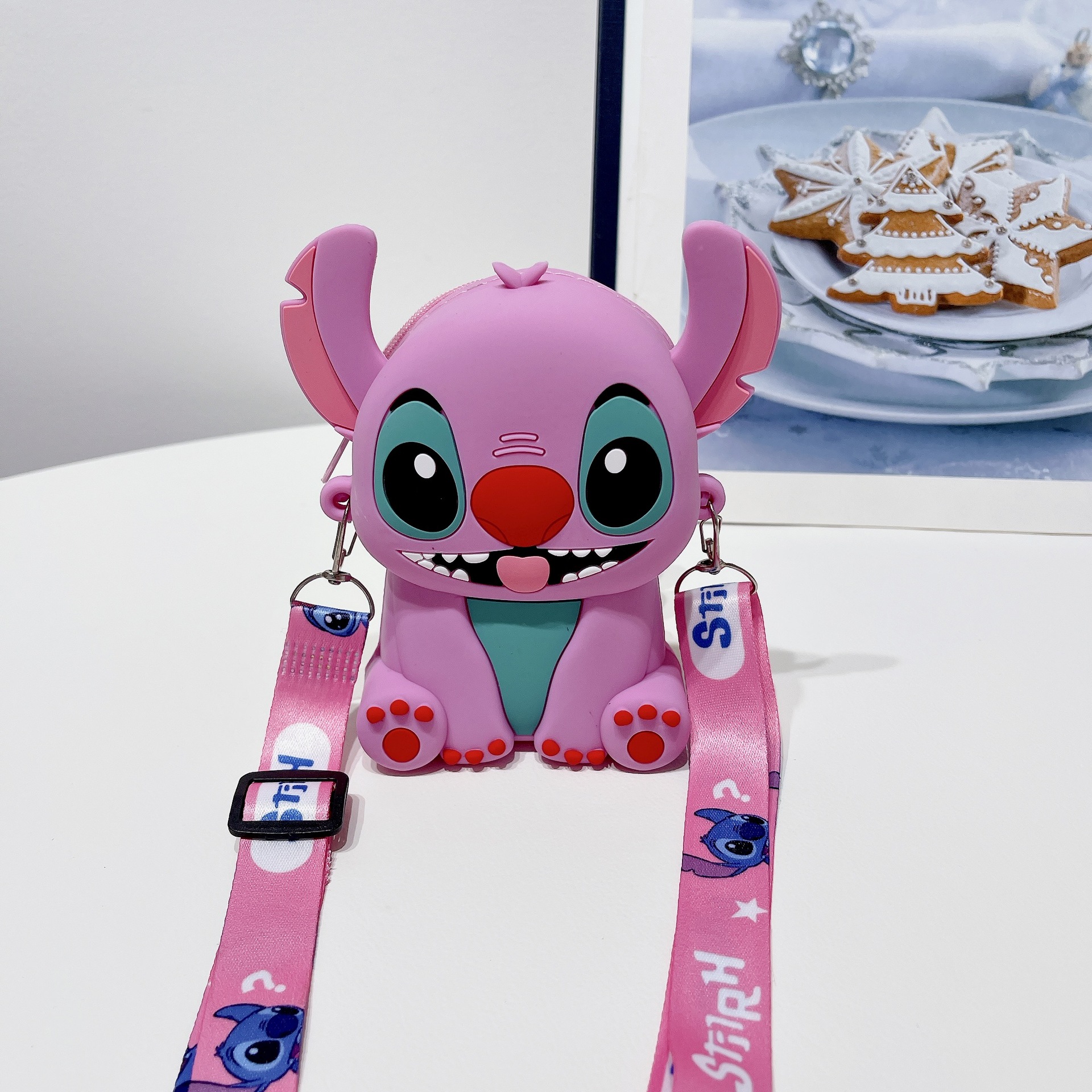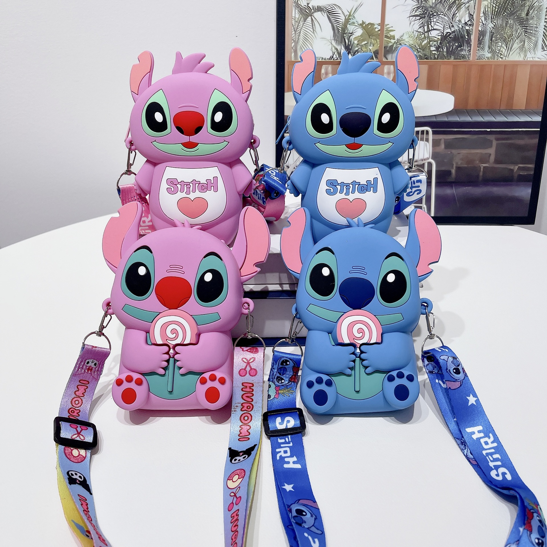 • 스티치 롤리팝 실리콘 동전 지갑 핑크
