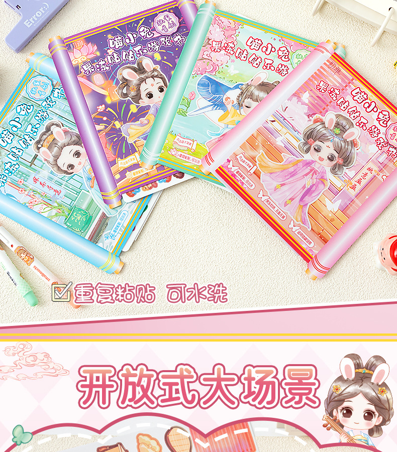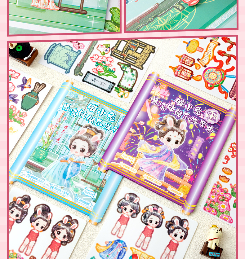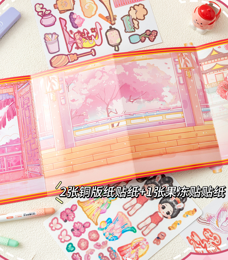 [통관 복지] 야옹 토끼 젤리 스티커 게임장 3D 깜박임 골동품 스티커 책 어린 소녀 스티커 책