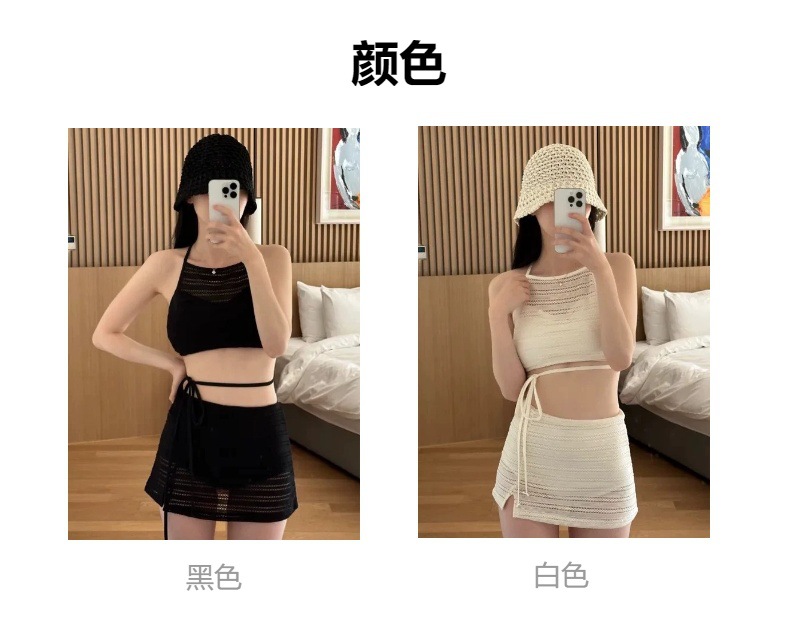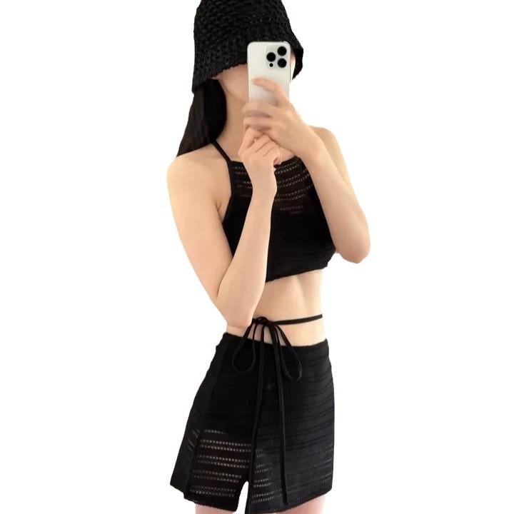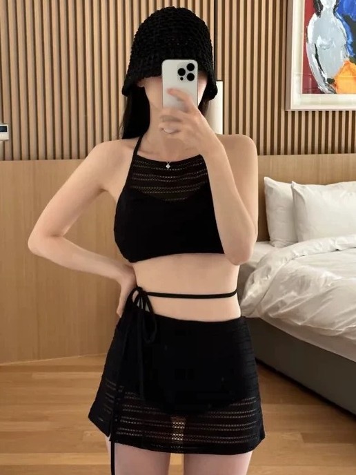 2024 새로운 한국 고급 레이스 메쉬 작은 가슴 분할 보수 스커트 순수한 욕망 수영복 여성 수영복