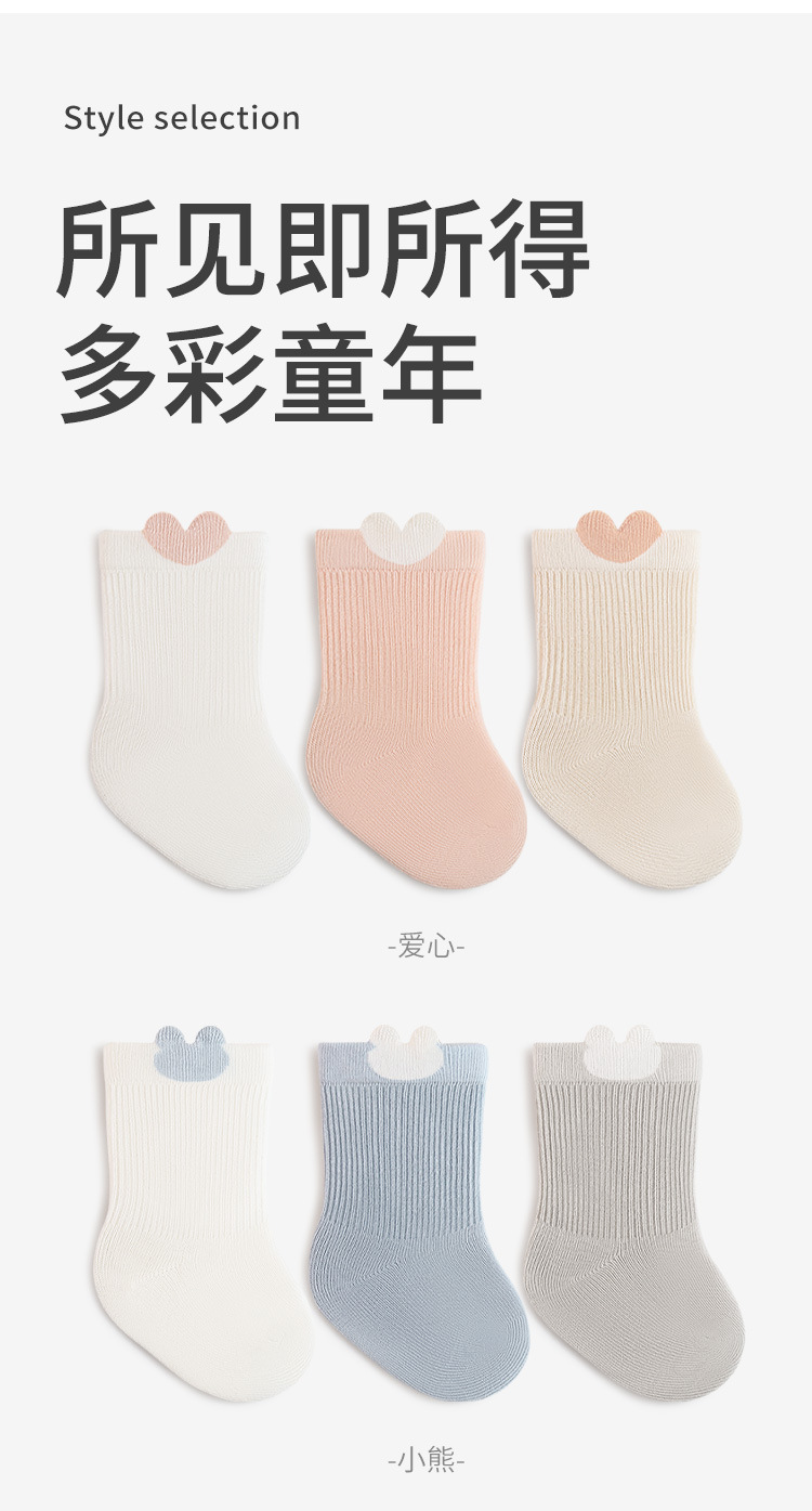 신생아 아기 양말 봄 새로운 만화 귀여운 아기 양말 뼈없는 단색 어린이 중간 튜브 양말 소년 소녀스토어 가기
