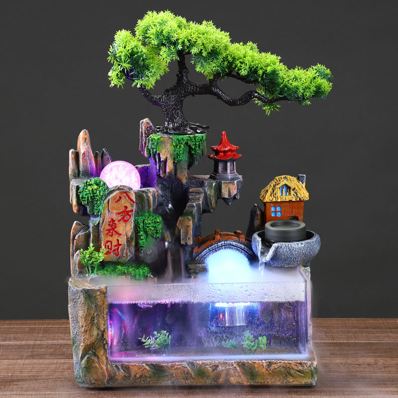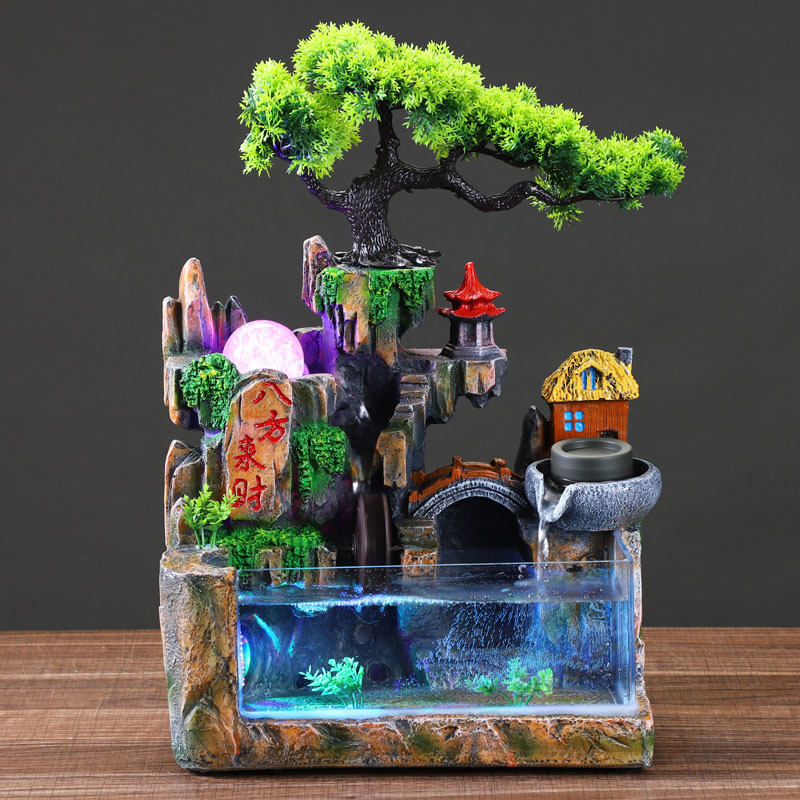 2025 새로운 데스크탑 창조적 인 작은 바위 유리 물 분수 풍경 장식품 부 거실 사무실 물고기스토어 가기