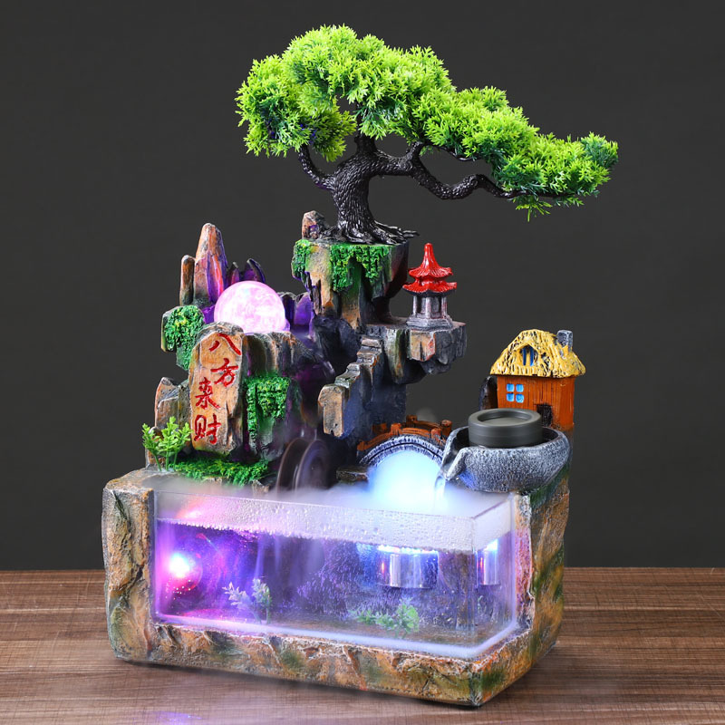 2025 새로운 데스크탑 창조적 인 작은 바위 유리 물 분수 풍경 장식품 부 거실 사무실 물고기