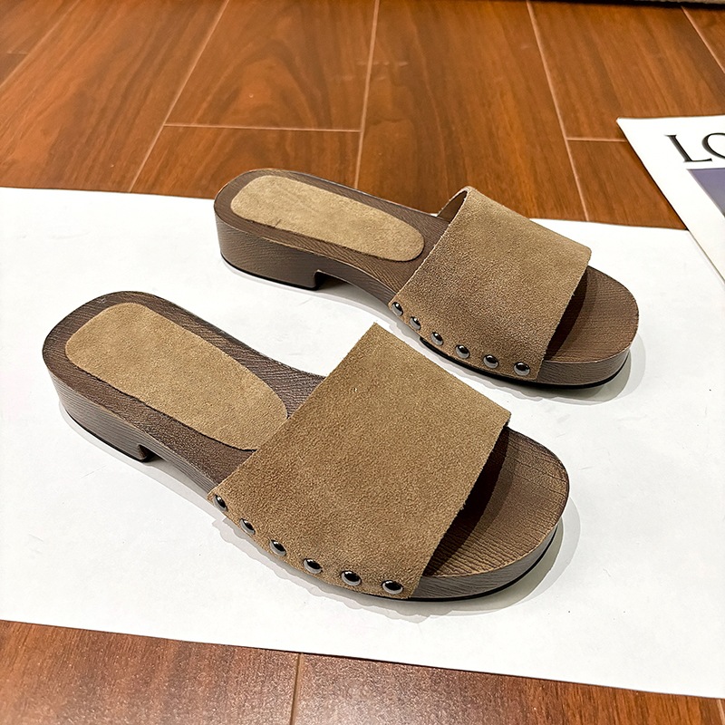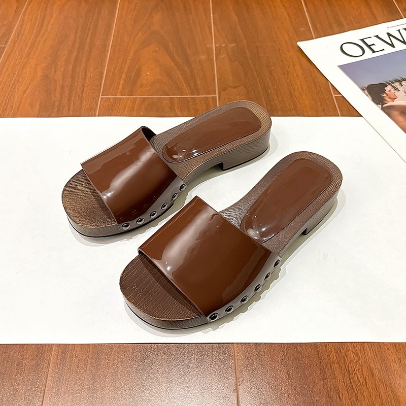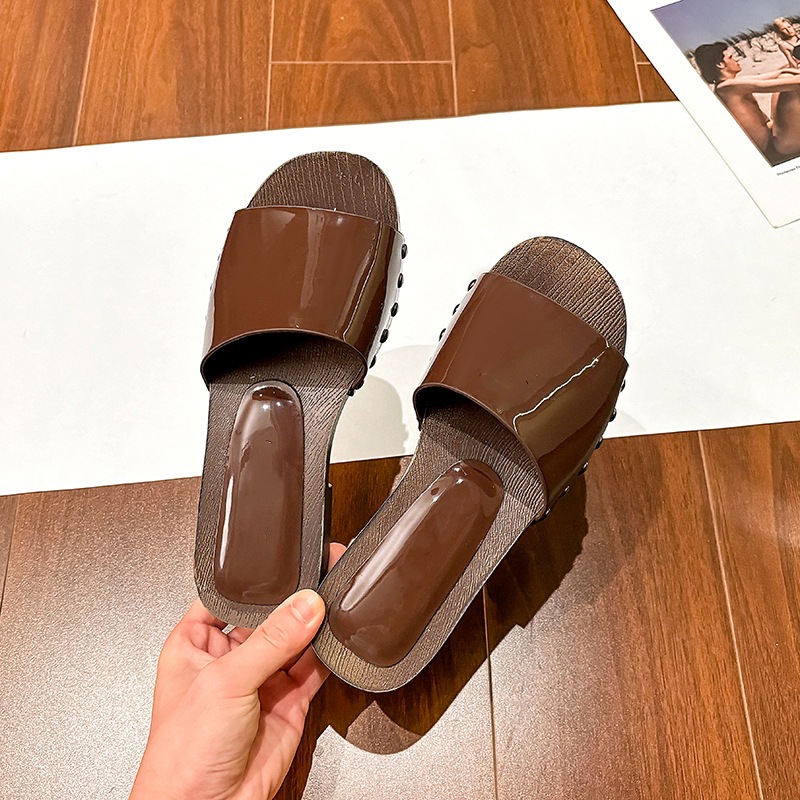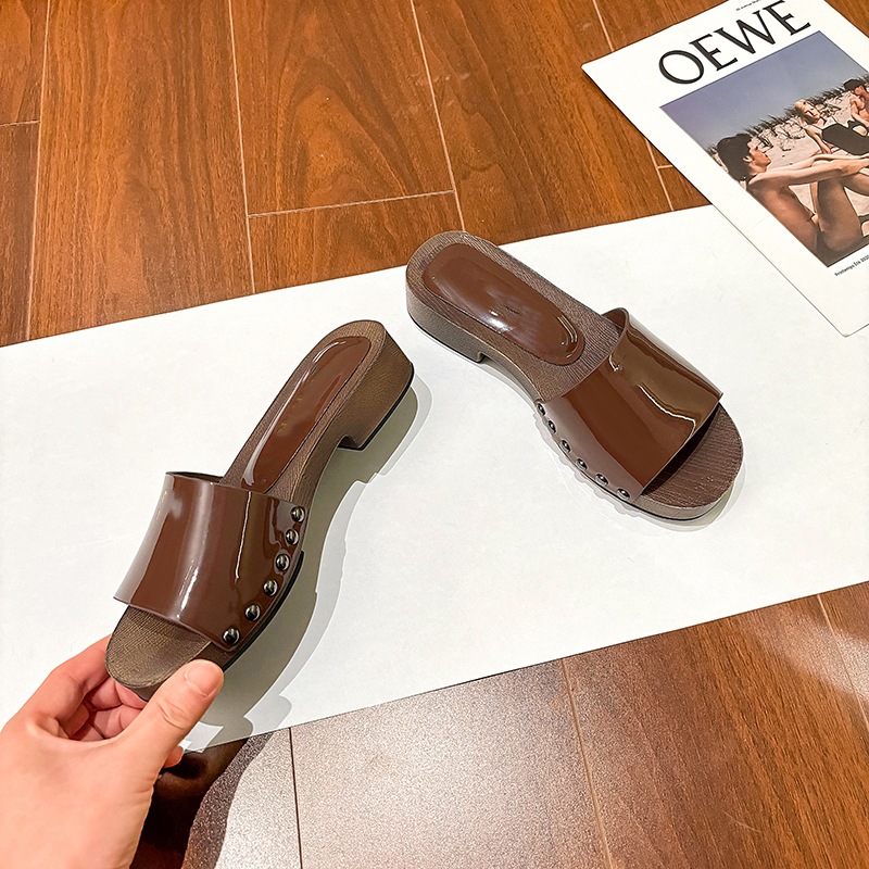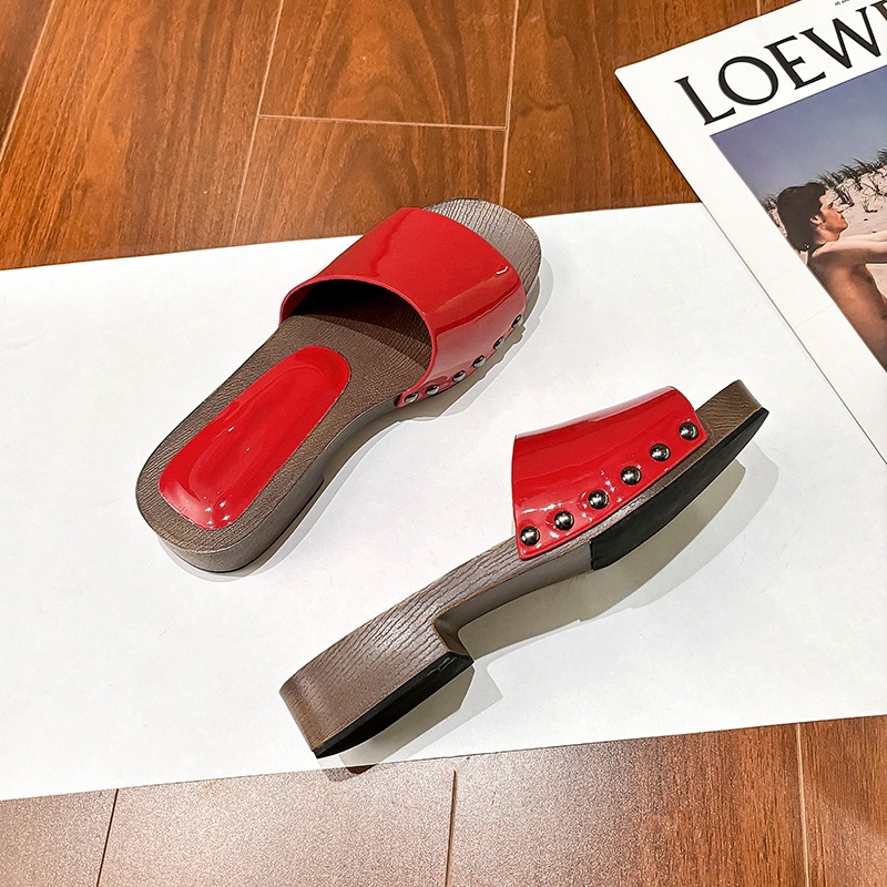 하이 에디션 Miu25 봄 새로운 캔디 컬러 아우터 비치 미끄럼 방지 우드 그레인 두꺼운 바닥 청키 힐 샌들 여성용스토어 가기