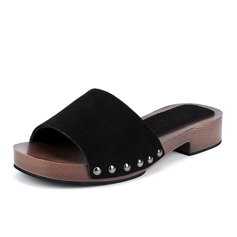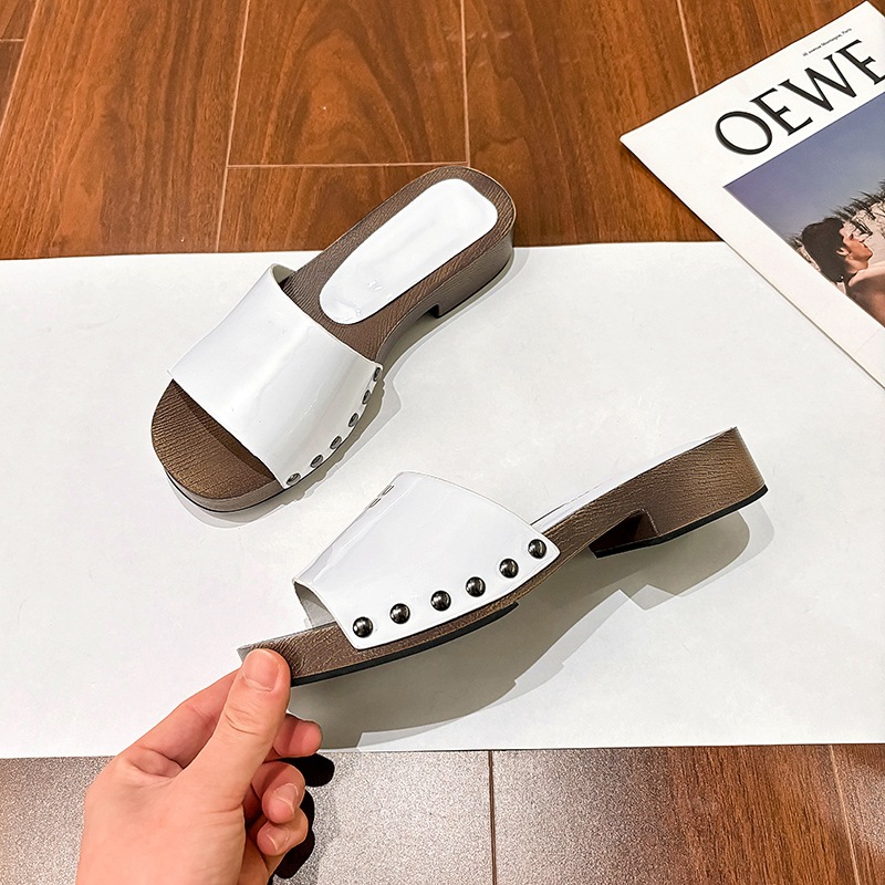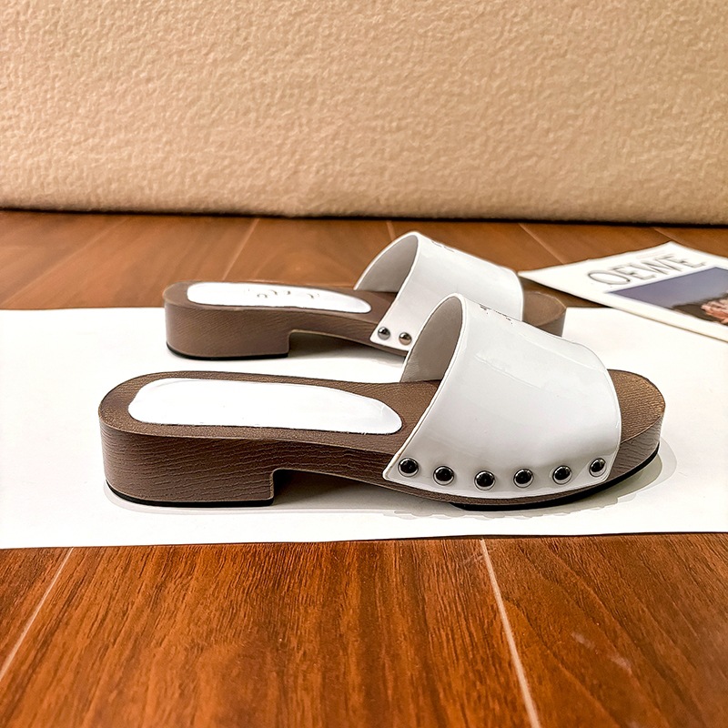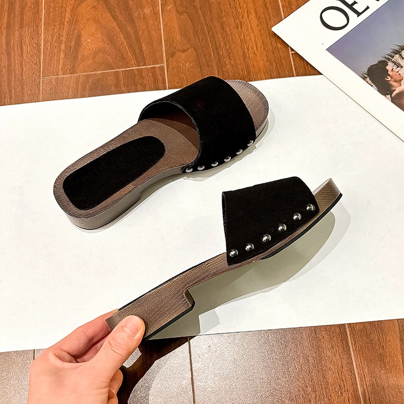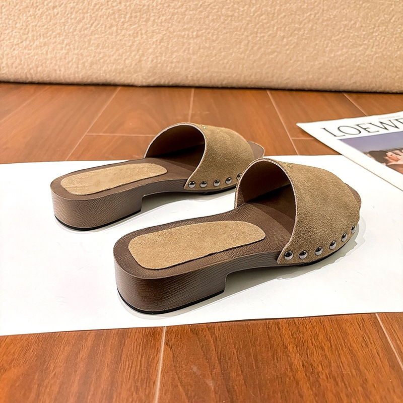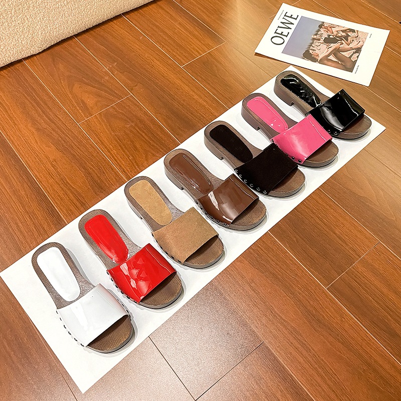 하이 에디션 Miu25 봄 새로운 캔디 컬러 아우터 비치 미끄럼 방지 우드 그레인 두꺼운 바닥 청키 힐 샌들 여성용스토어 가기