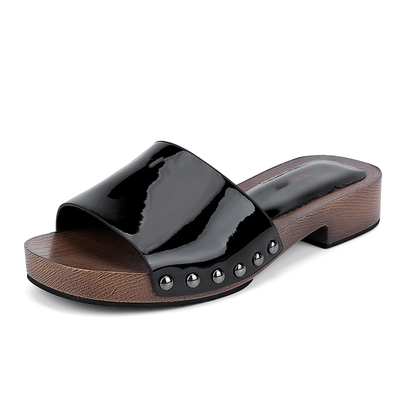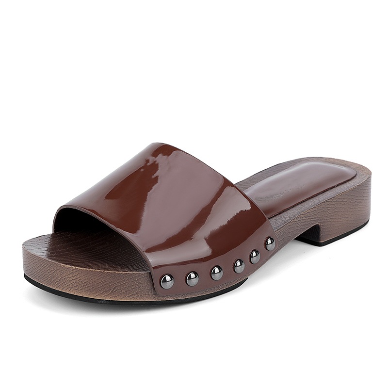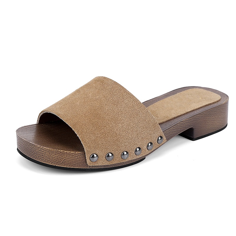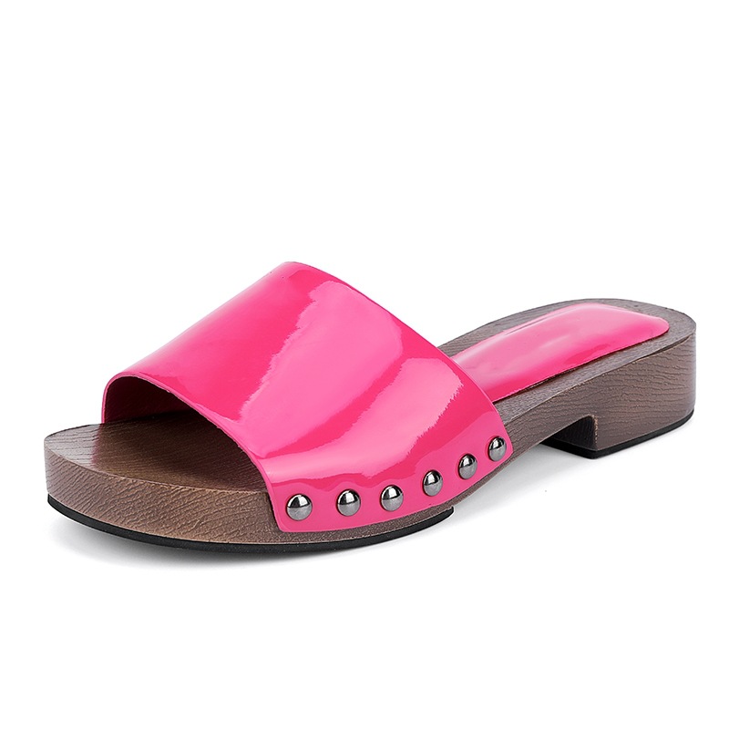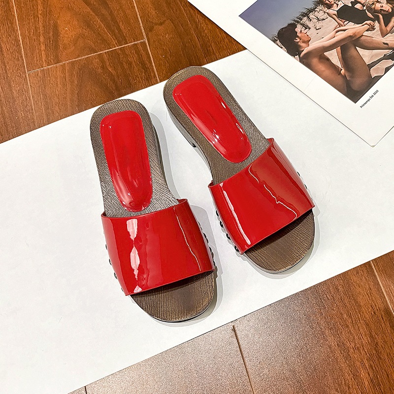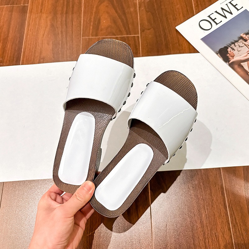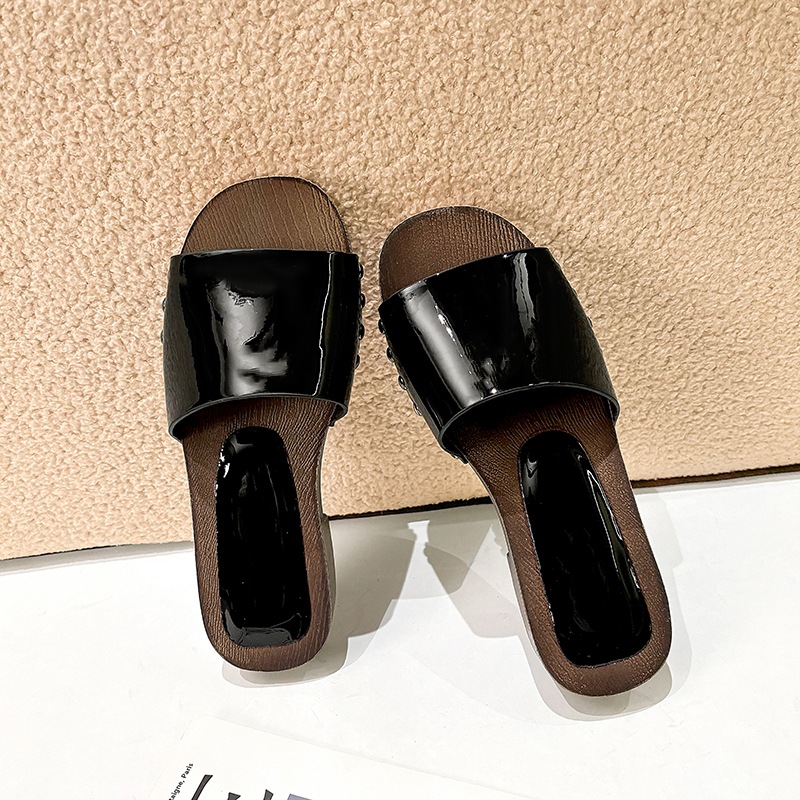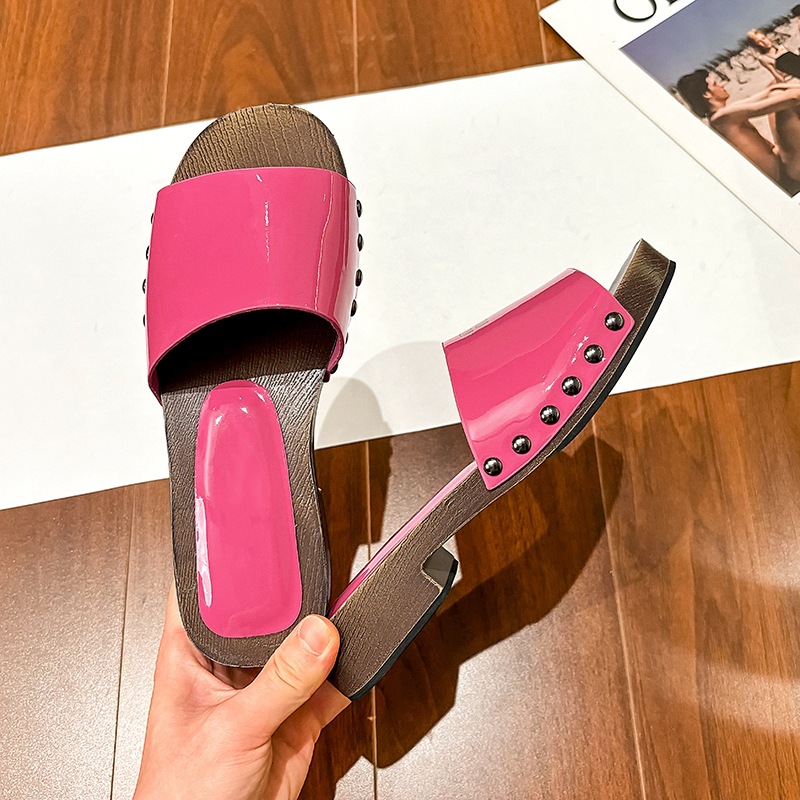 하이 에디션 Miu25 봄 새로운 캔디 컬러 아우터 비치 미끄럼 방지 우드 그레인 두꺼운 바닥 청키 힐 샌들 여성용