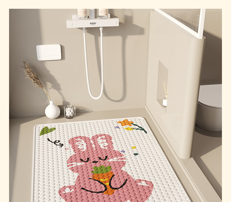 • 핑크 토끼 꽃 사각형 수직 흡입 컵 패드