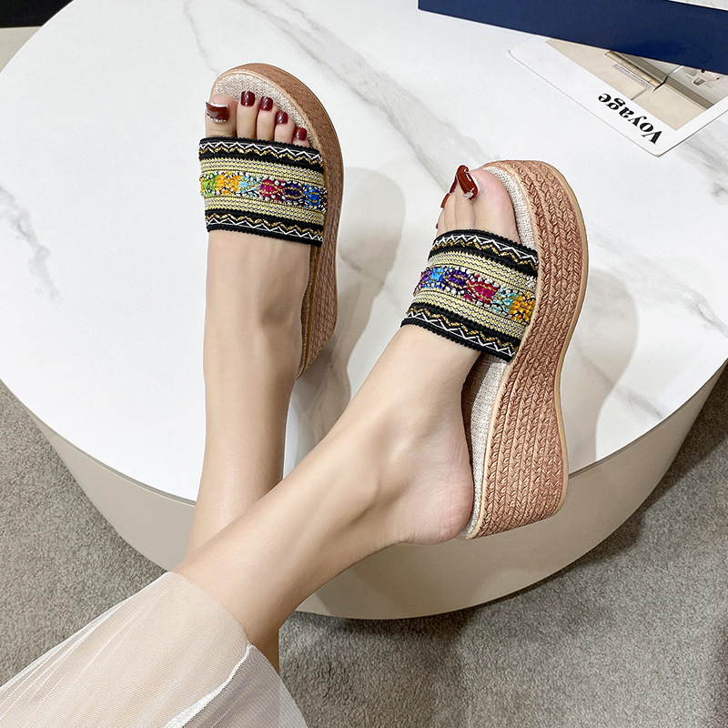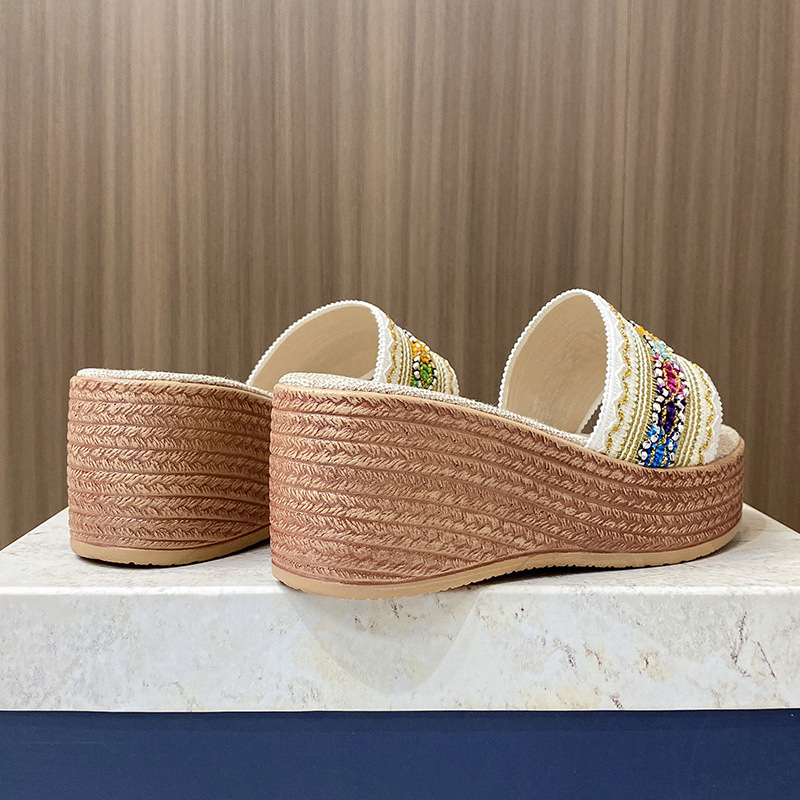 유럽, 미국 및 아프리카 대외 무역 컬러 리본 두꺼운 바닥 슬리퍼 여성용 1 피트 플러스 사이즈 샌들과 슬리퍼스토어 가기