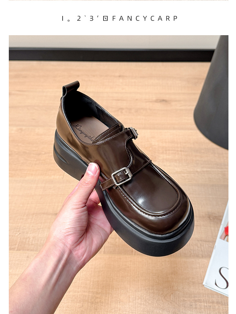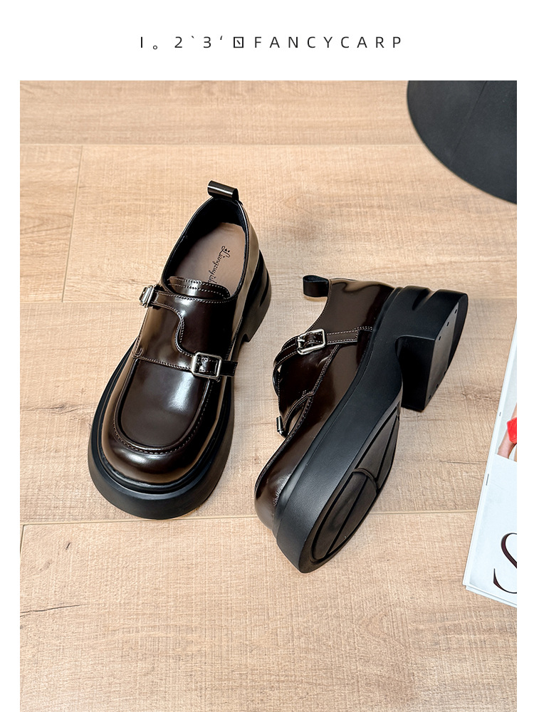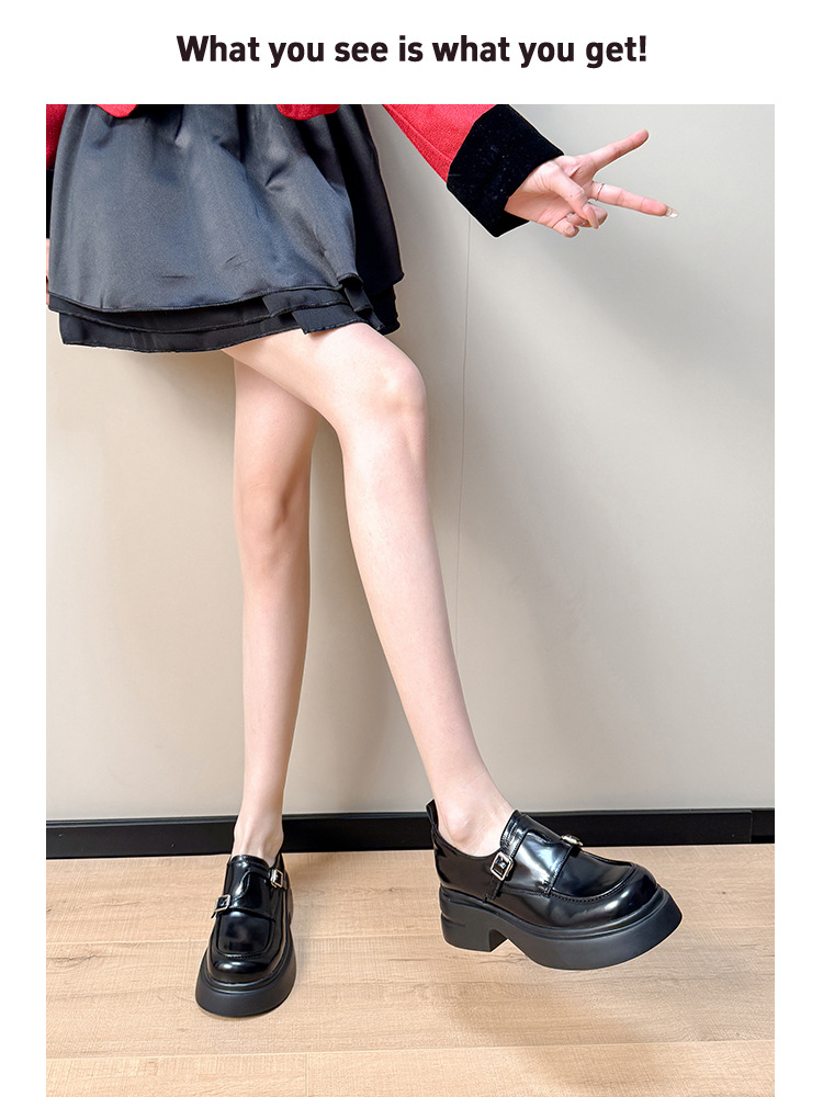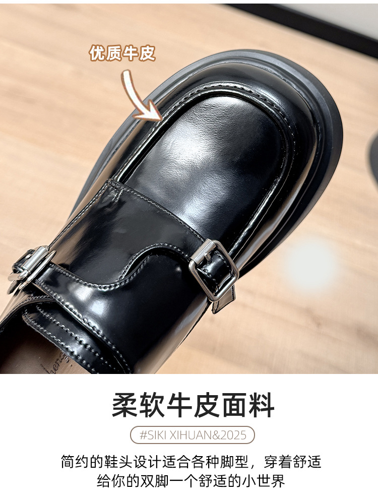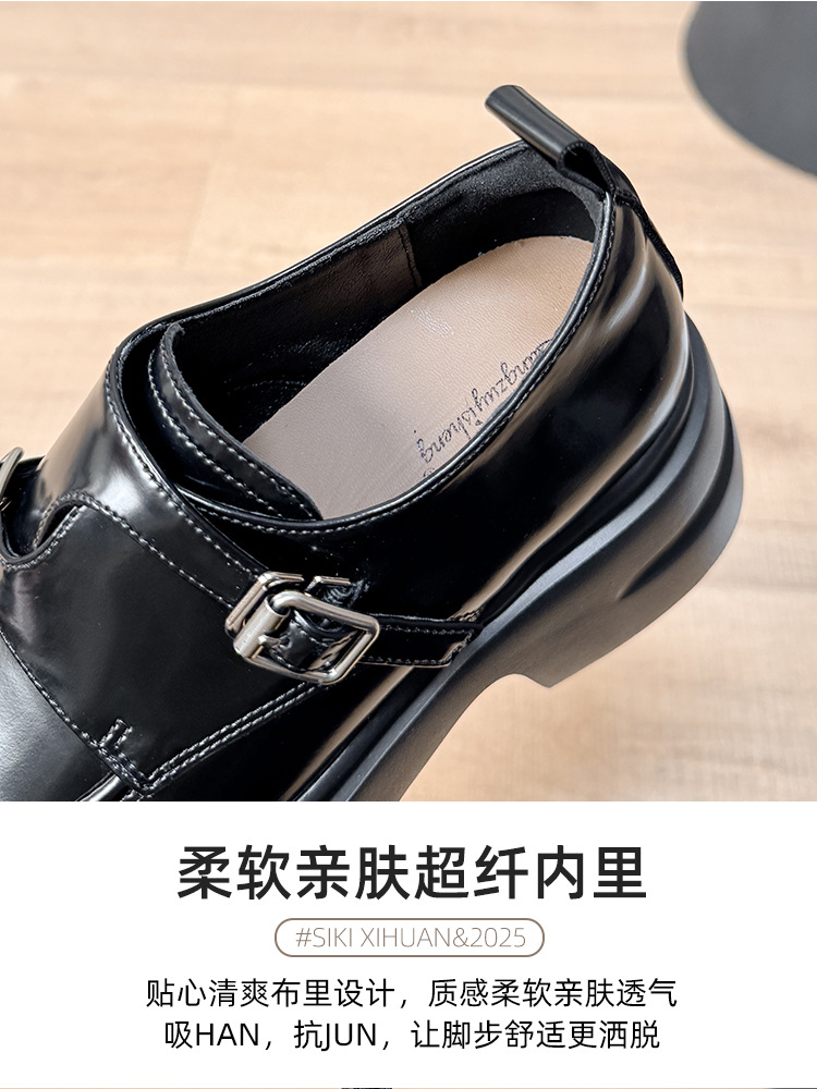 영국 스타일의 작은 가죽 신발 여성의 2025 봄 새로운 도착 복고풍 모든 매치를 두껍게-솔 높은 로퍼 캐주얼 싱글 레이어 신발 트렌디스토어 가기