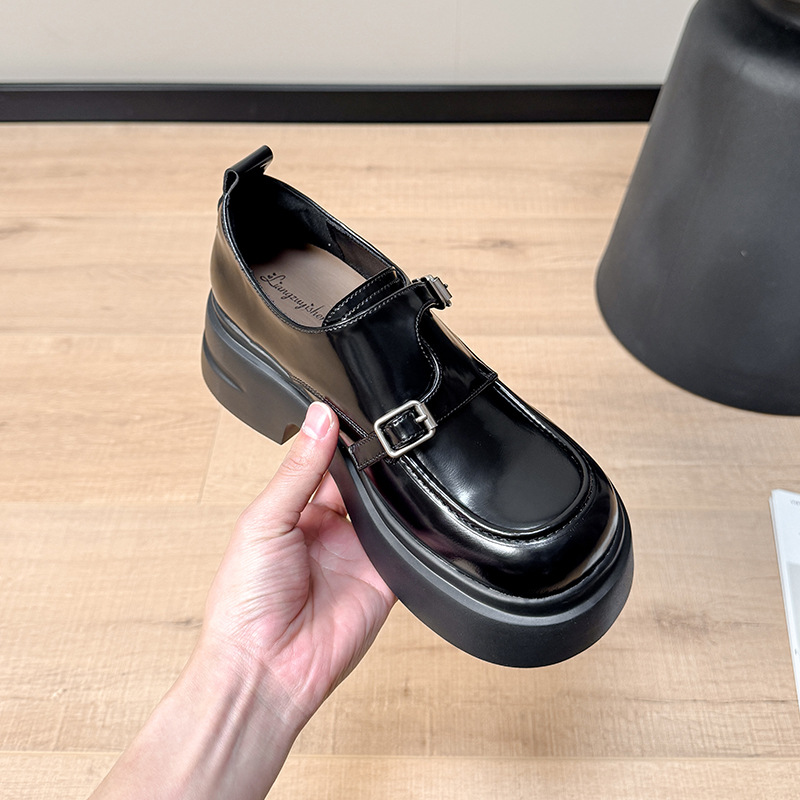 영국 스타일의 작은 가죽 신발 여성의 2025 봄 새로운 도착 복고풍 모든 매치를 두껍게-솔 높은 로퍼 캐주얼 싱글 레이어 신발 트렌디