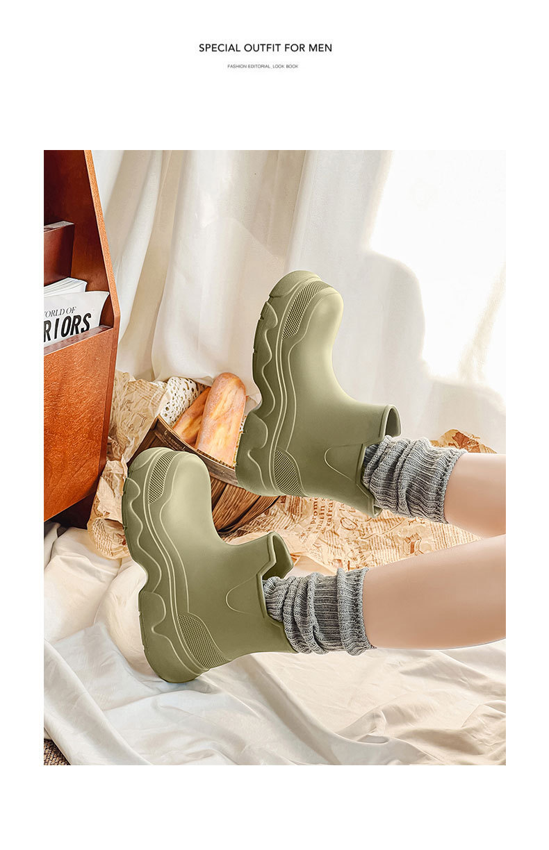 여성용 아웃도어 용 두꺼운 밑창 장화 방수 미끄럼 방지 미드 배럴 장화 EVA 4 시즌 증가 올 매치 내마모성 탈취제 워터 슈즈