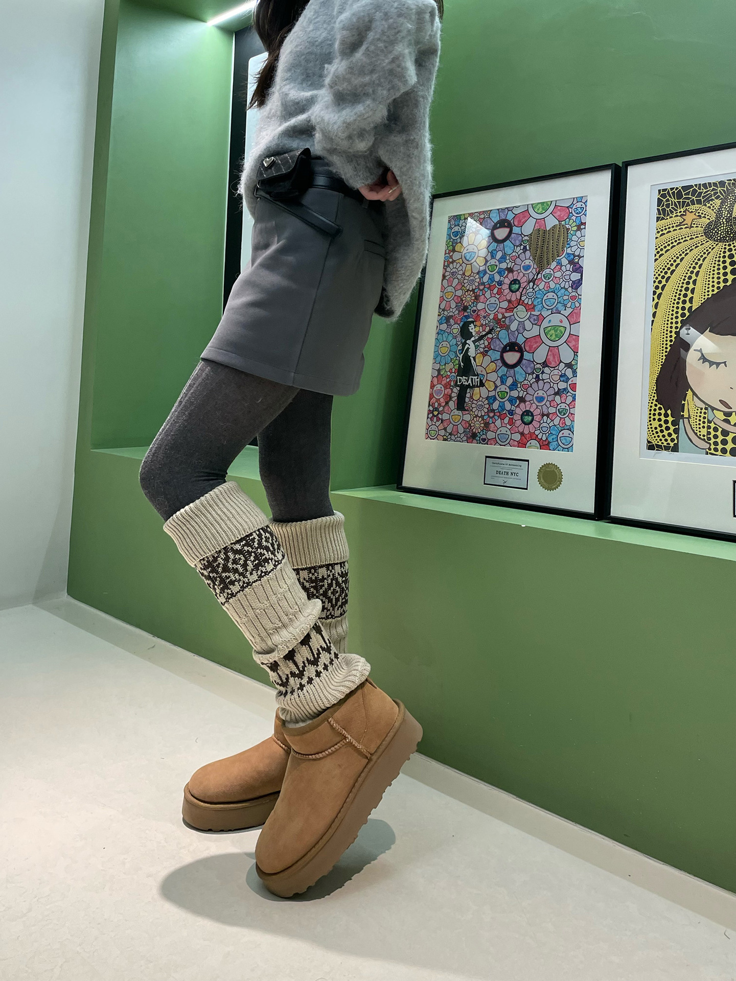 노르딕 빈티지 페어 랜드 여성의 가을과 겨울 힙 레그 커버 두꺼운 라인 눈송이 슬리밍 따뜻한 회색 송아지 양말 커버스토어 가기