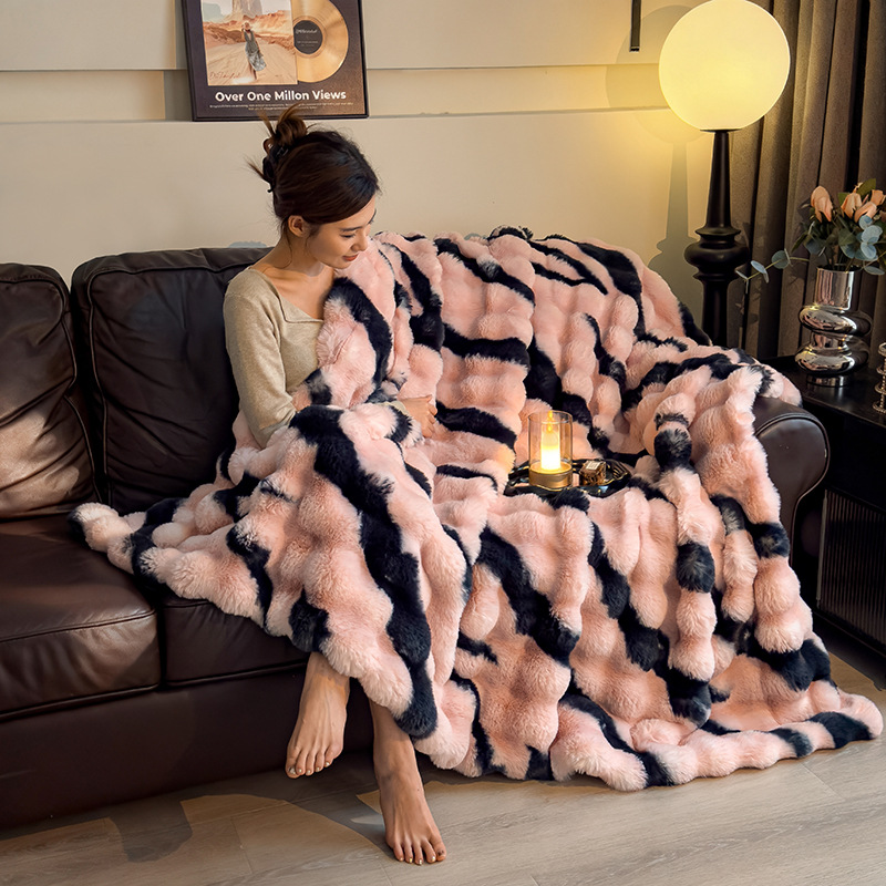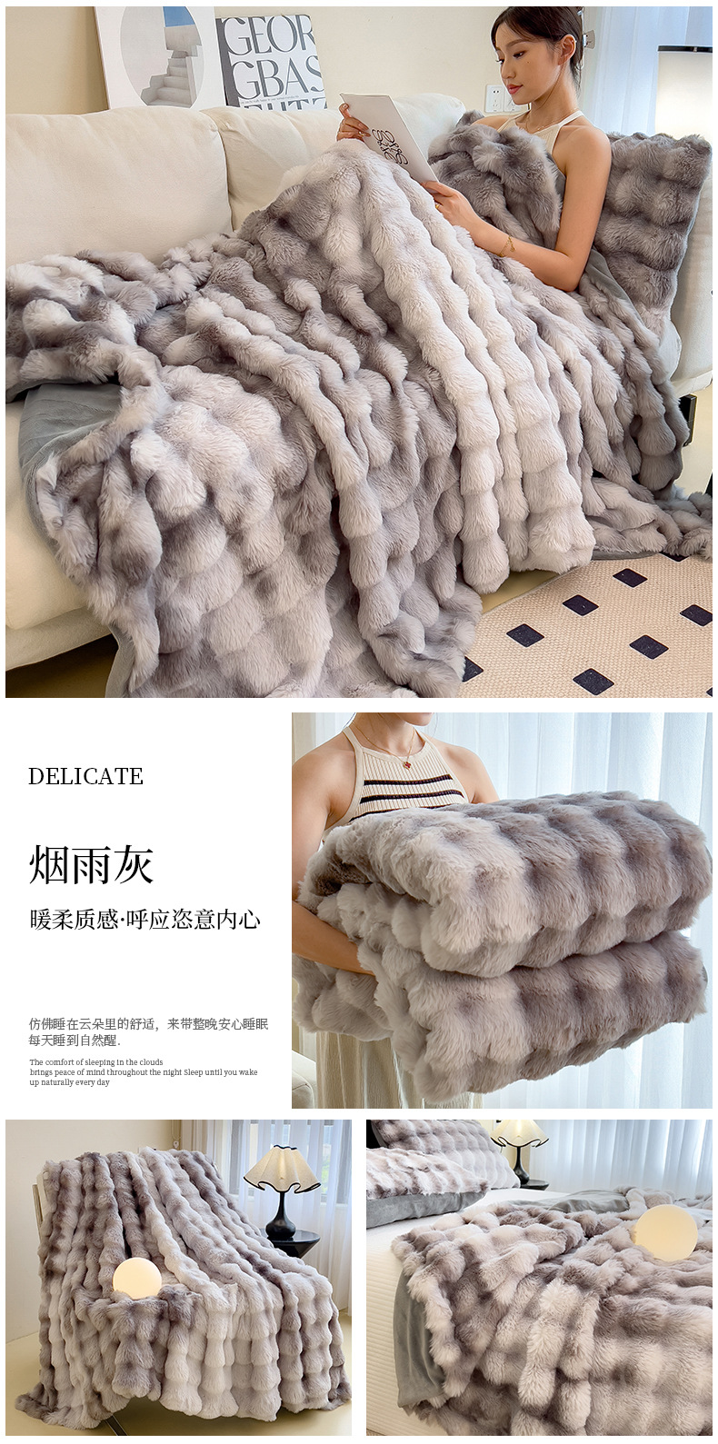 새로운 가을과 겨울 큰 거품 다채로운 토끼 플러시 담요 기모 두꺼운 따뜻한 담요 부드럽고 편안한 국경 담요스토어 가기