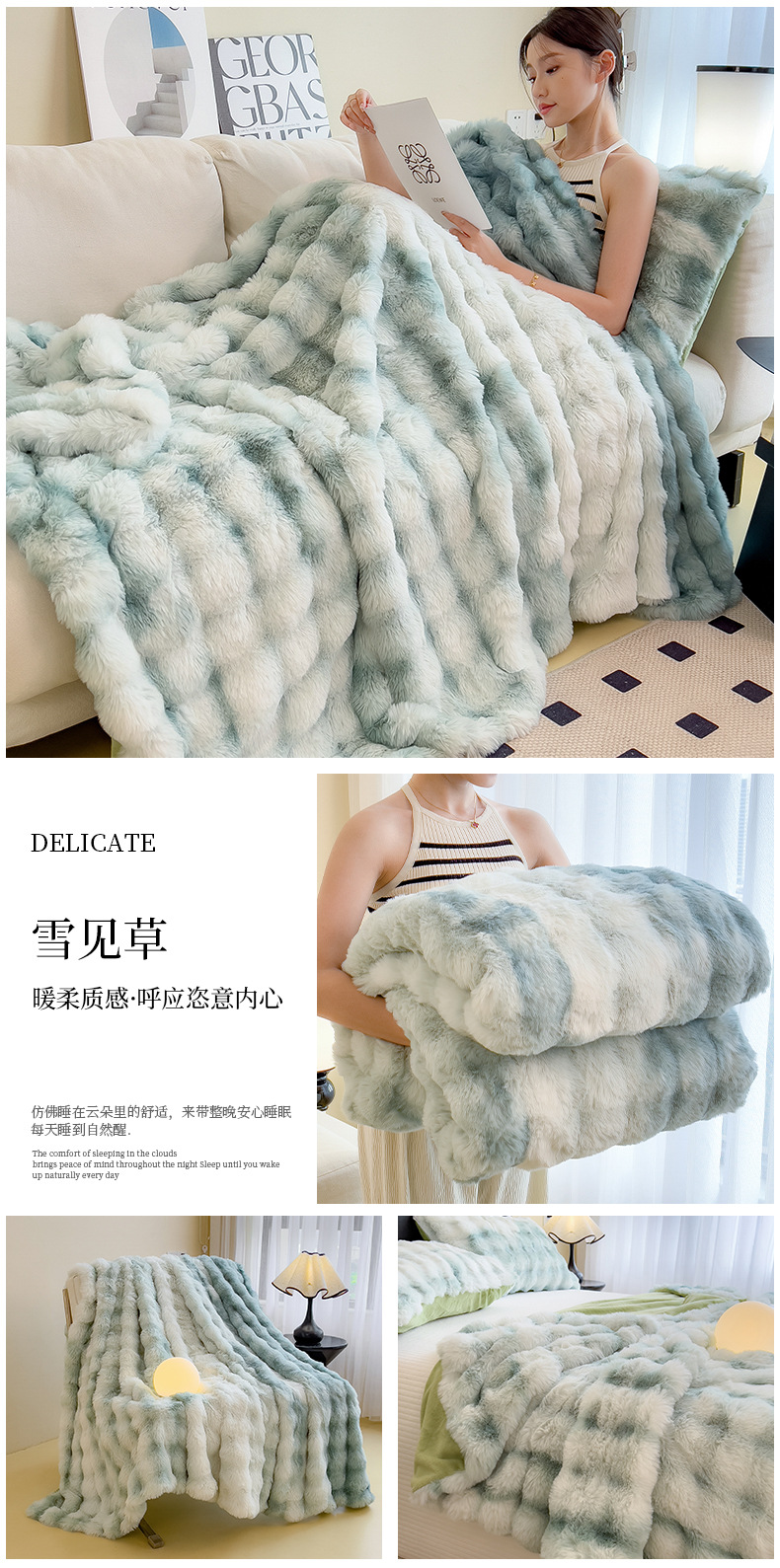 새로운 가을과 겨울 큰 거품 다채로운 토끼 플러시 담요 기모 두꺼운 따뜻한 담요 부드럽고 편안한 국경 담요