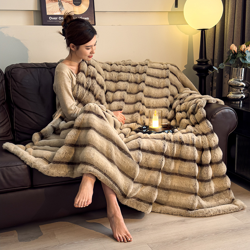• 토끼털 이중 담요 - 스트라이프 브라운
