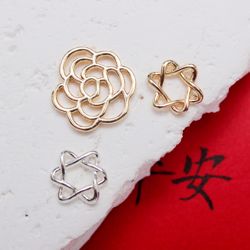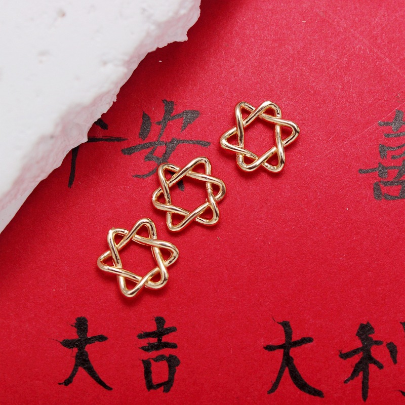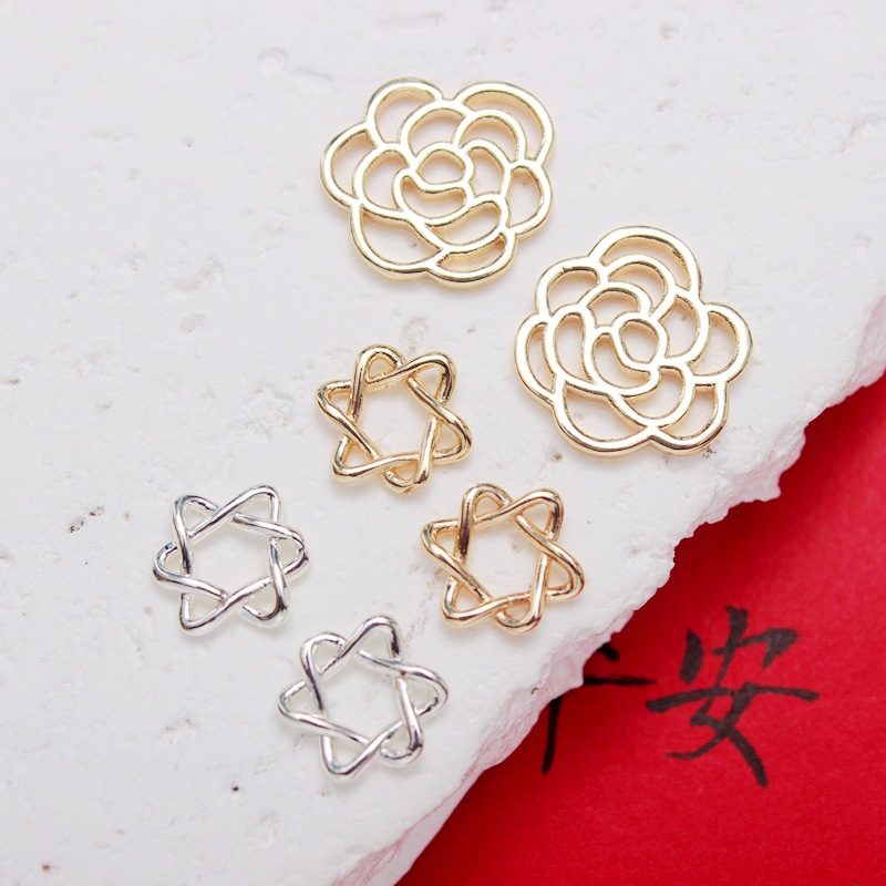 14k包金保色双面镂空花片16mm配珠隔片六角星diy手链垫片吊坠配件