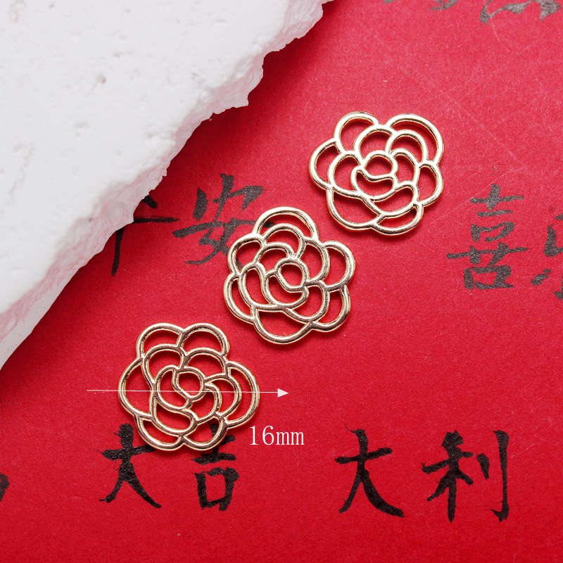 14k 골드 컬러 유지 양면 중공 꽃 조각 16mm 비드 스페이서 육각형 스타 diy 팔찌 개스킷 펜던트 액세서리