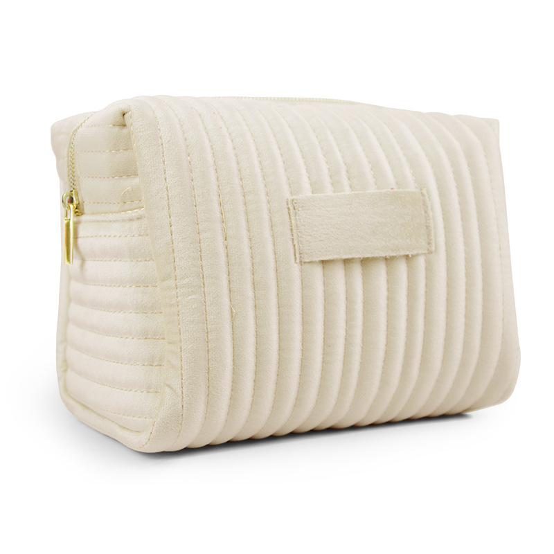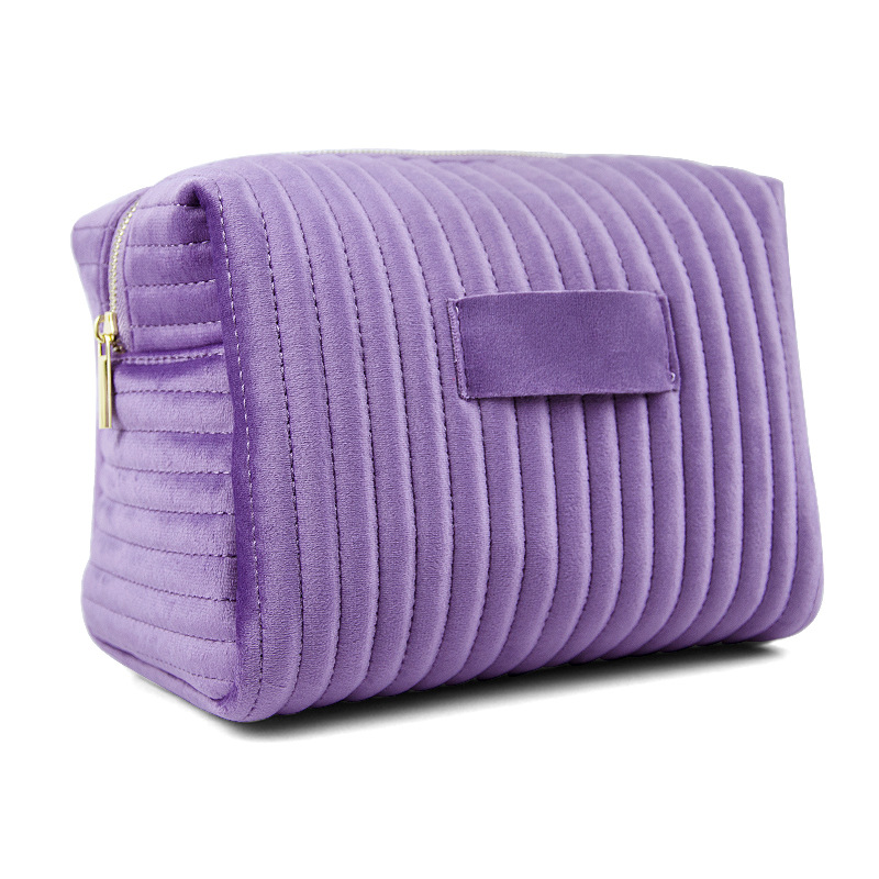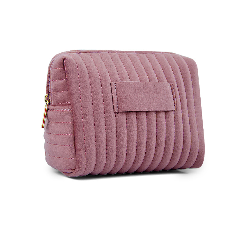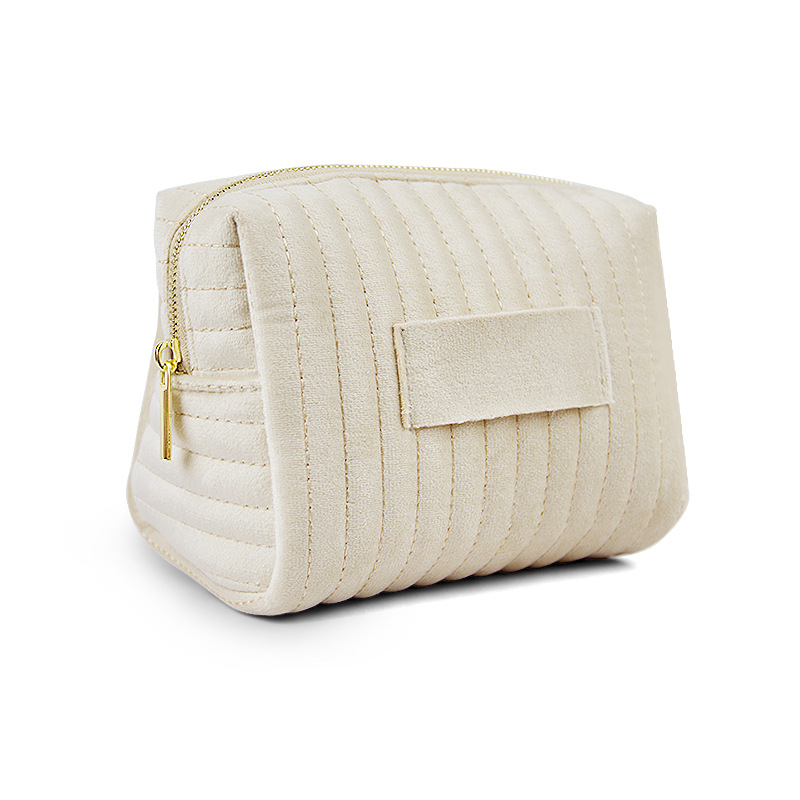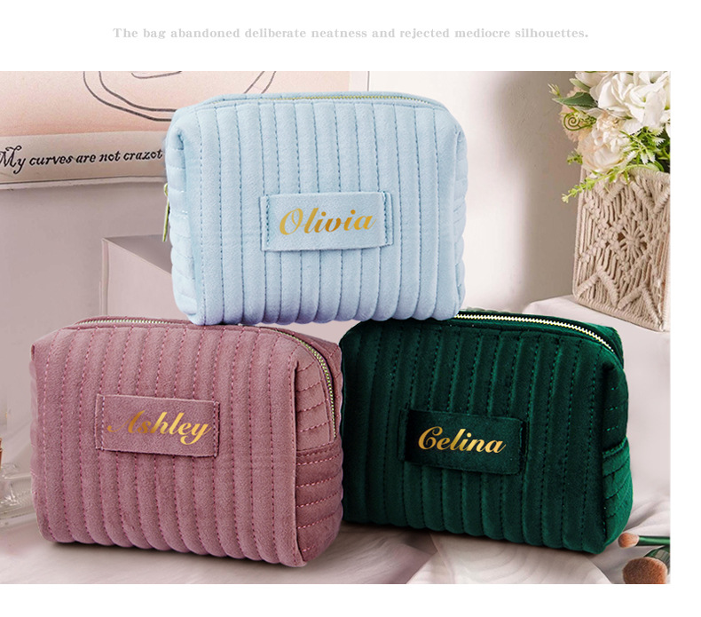 에츠이 해외 인기 자수 스트라이프 벨벳 화장품 파우치, 고급스럽고 부드러우며 피부 친화적인 화장품 수납 가방