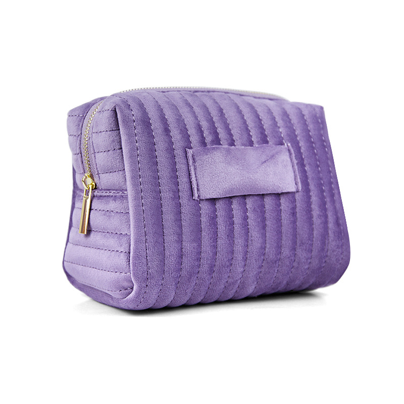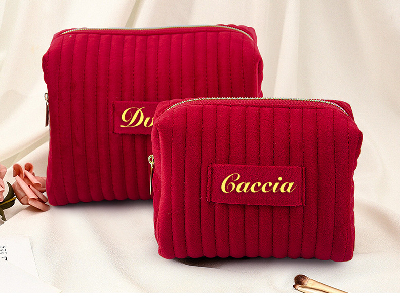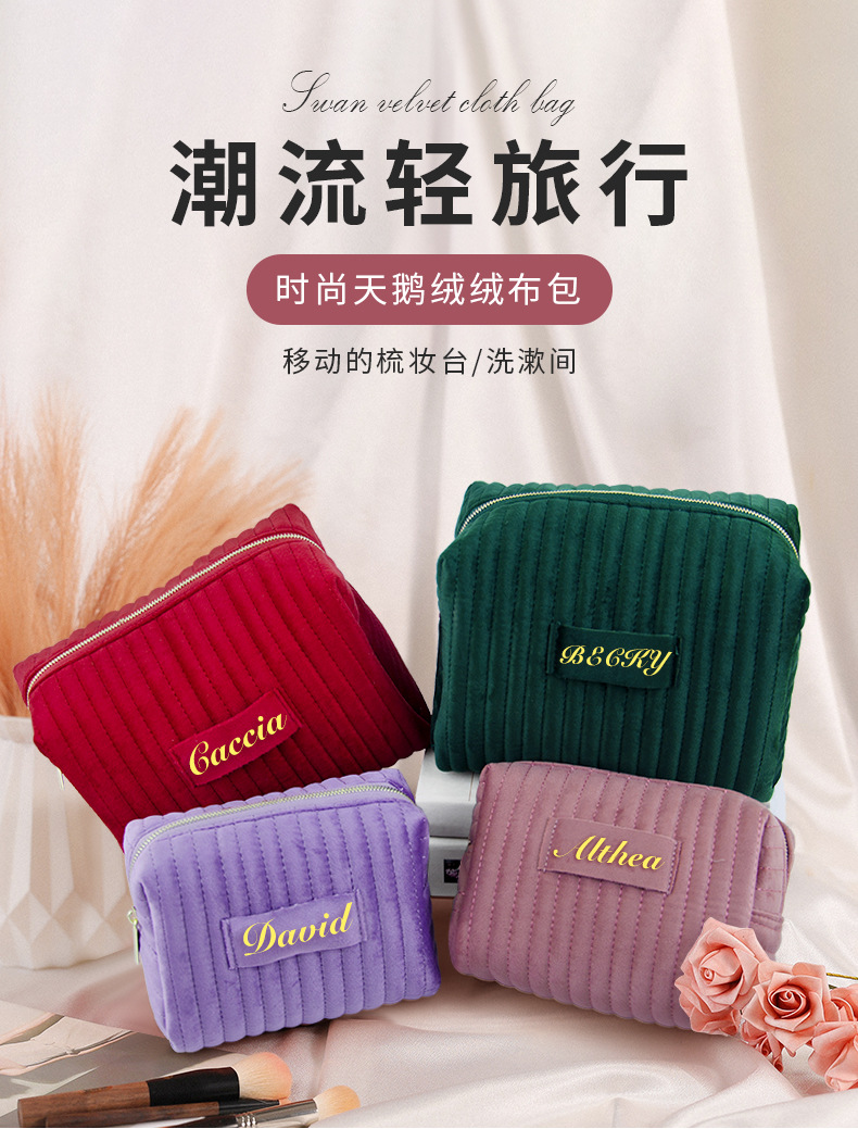 etsy跨境爆款刺绣条纹天鹅绒化妆包高颜值柔软亲肤化妆品收纳包