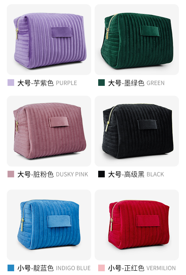 에츠이 해외 인기 자수 스트라이프 벨벳 화장품 파우치, 고급스럽고 부드러우며 피부 친화적인 화장품 수납 가방스토어 가기