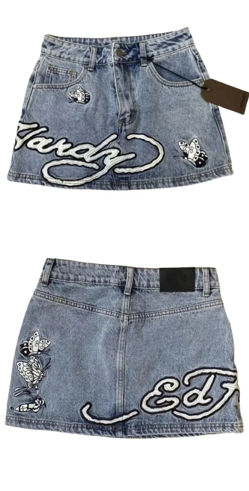 千禧年复古哥特式性感牛仔裙时尚街头字母印花休闲辣妹短裙蝴蝶图案迷你A线裙