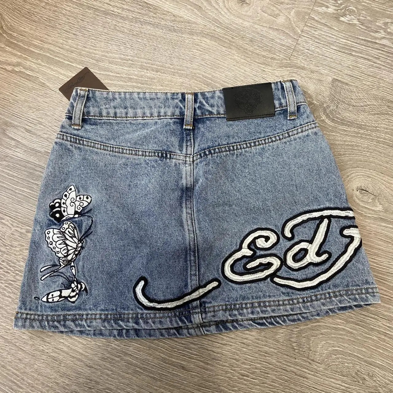 크로스 보더 Y2K 스트리트 빈티지 패션 짧은 스커트 하라주쿠 고딕 힙합 알파벳 자수 빈티지 블루 데님 스커트
