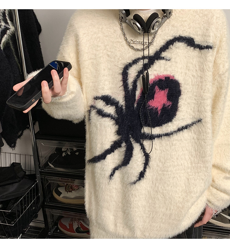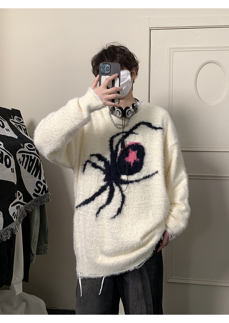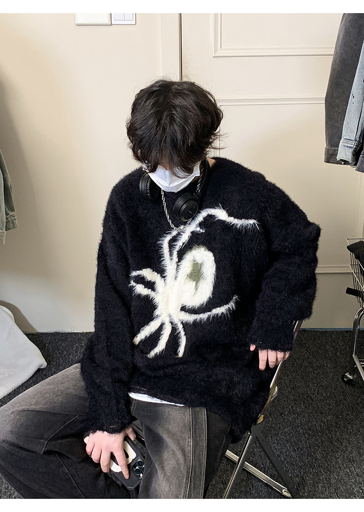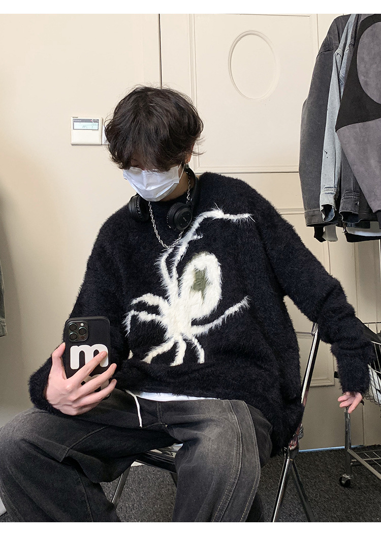 스파이더 자카드 스웨터 남자의 가을과 겨울 게으른 스타일 터틀넥 스웨터 트렌디 브랜드 루즈 캐주얼 스웨터스토어 가기