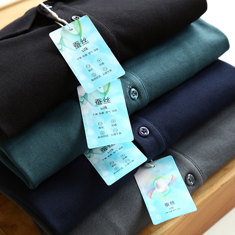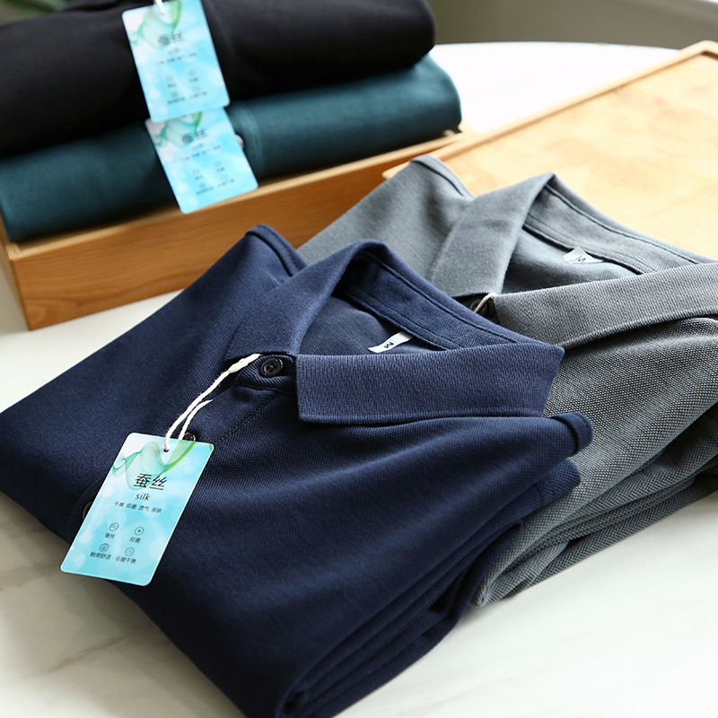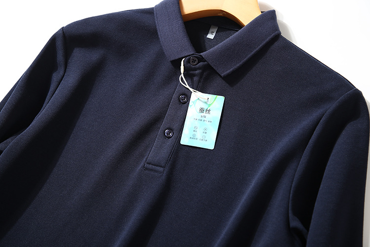 뽕나무는 실크 블렌드를 할 수 있습니다! 고급 원사 비드 그라운드! 통근 비즈니스 캐주얼 단색 남성 긴 소매 폴로 셔츠