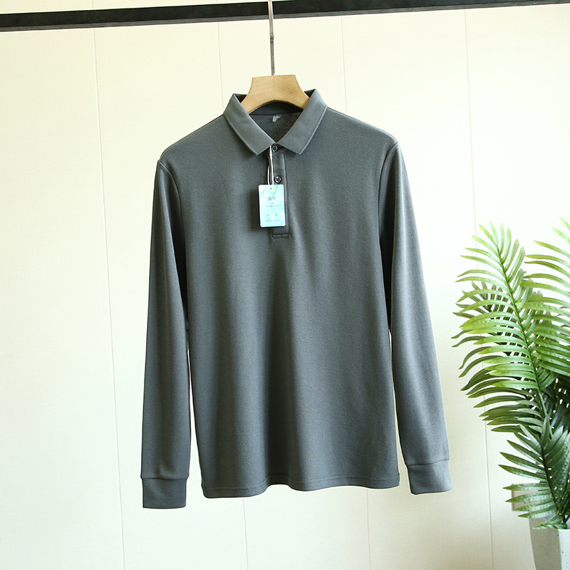 뽕나무는 실크 블렌드를 할 수 있습니다! 고급 원사 비드 그라운드! 통근 비즈니스 캐주얼 단색 남성 긴 소매 폴로 셔츠스토어 가기