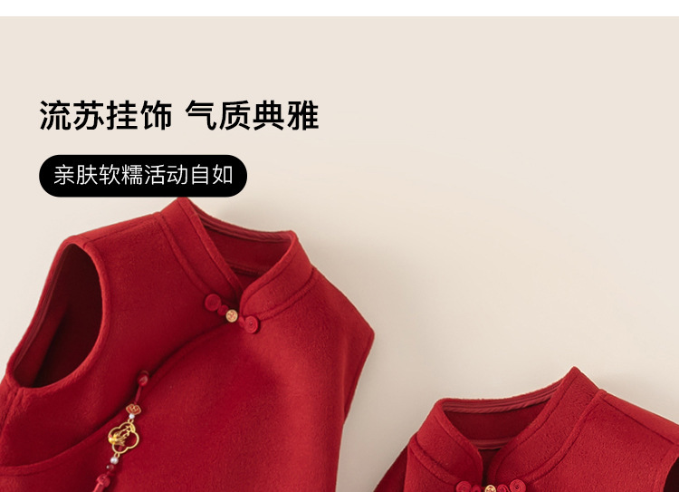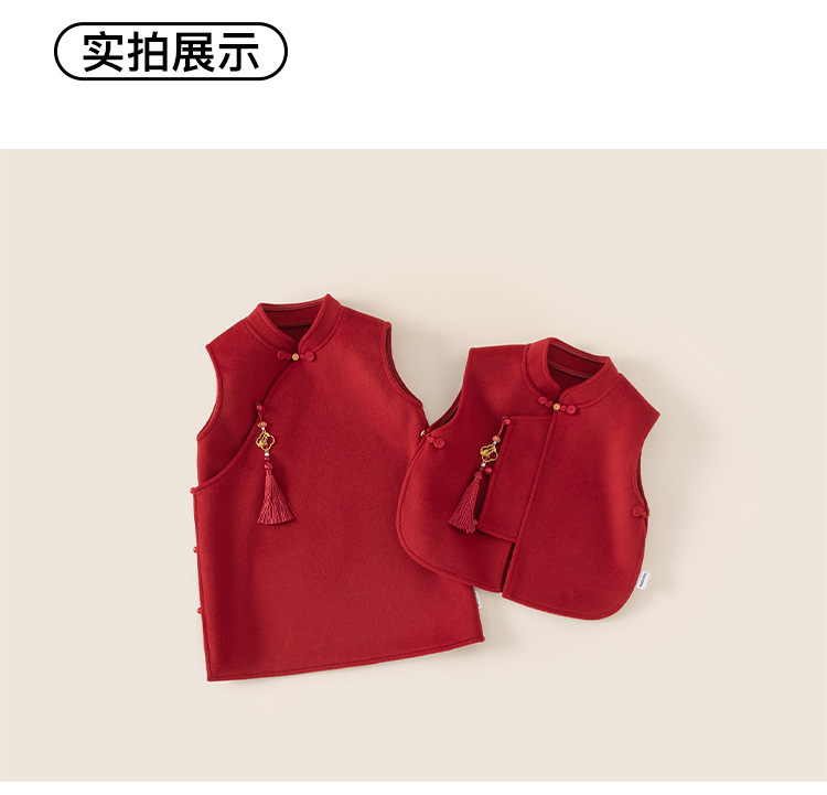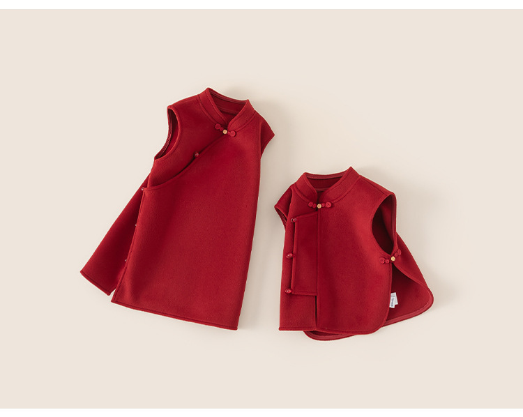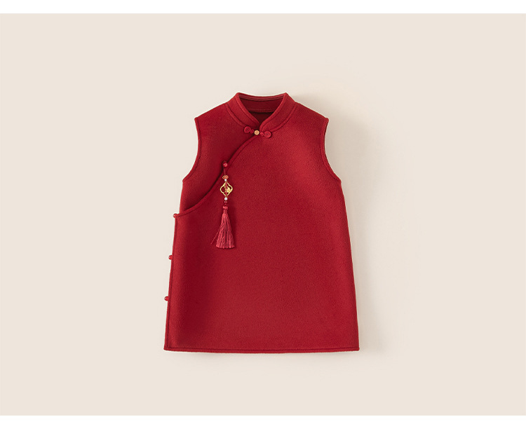 Bangxuan 아동 의류 소녀 치파오 새해 옷 겨울 어린이 새로운 중국 스타일 민족 스타일 조끼 아기 소녀 빨간 조끼 드레스