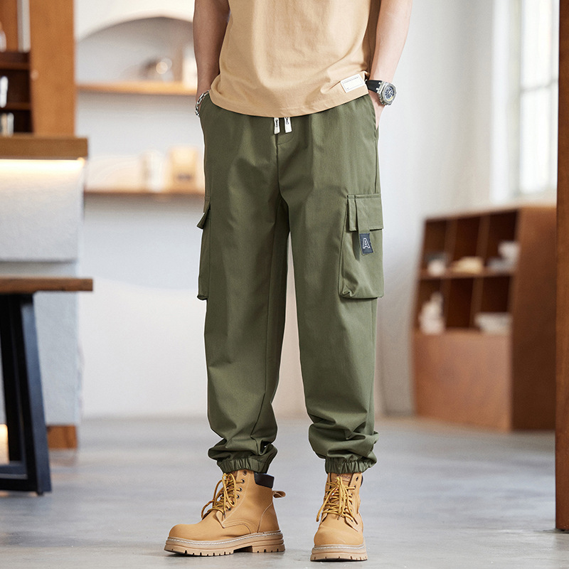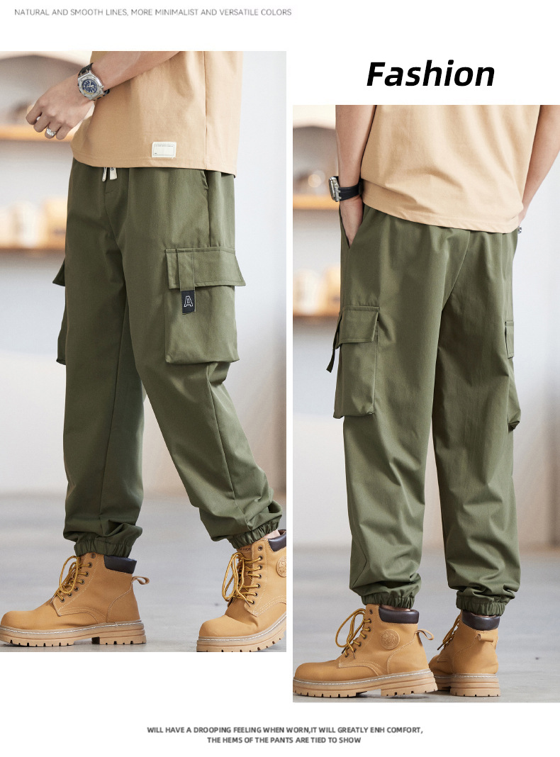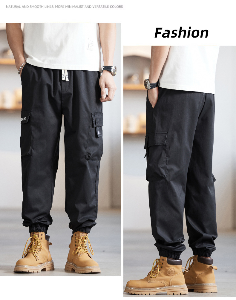 S8800 | 빅사이즈 남성복 봄 신상 작업복 캐주얼 팬츠 남성 루즈핏 오버사이즈 심플하고 다재다능한 조거 팬츠