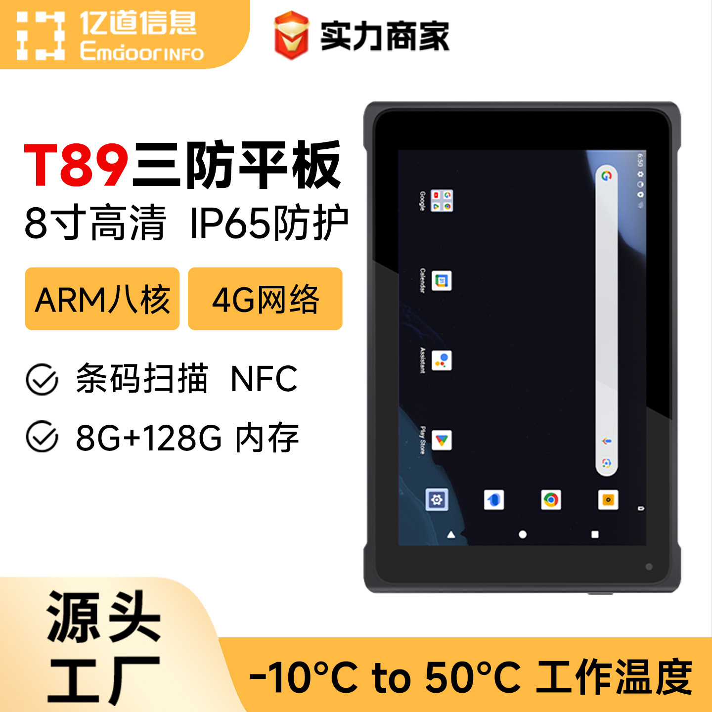 Yidao T89 산업용 태블릿 안드로이드 HD 화면 방진, 방수 및 낙하 방지 바코드 스캐닝 NFC 견고한 태블릿 컴퓨터스토어 가기