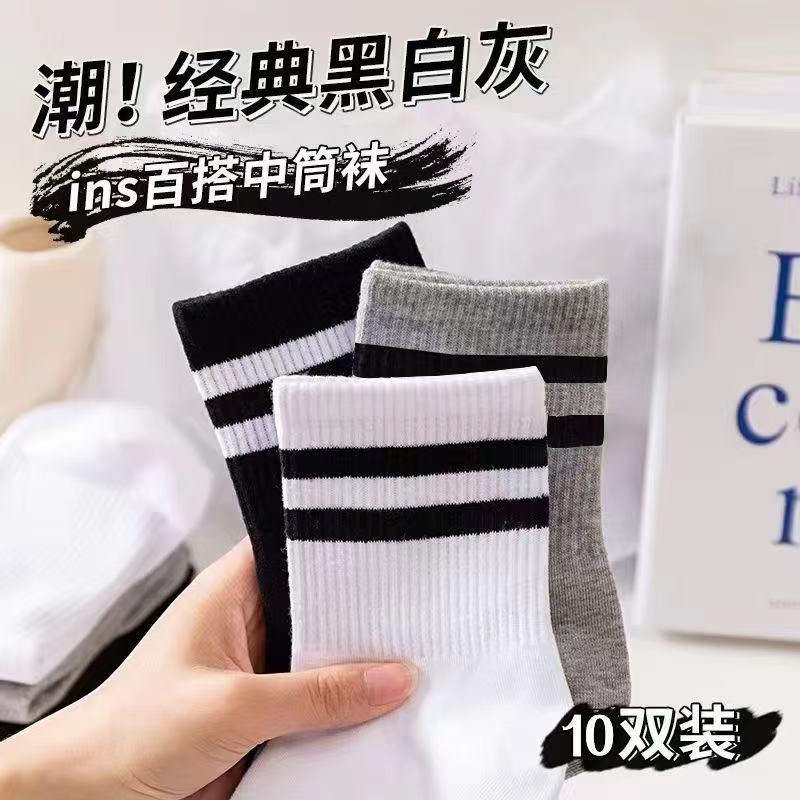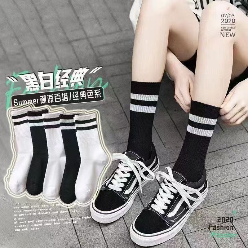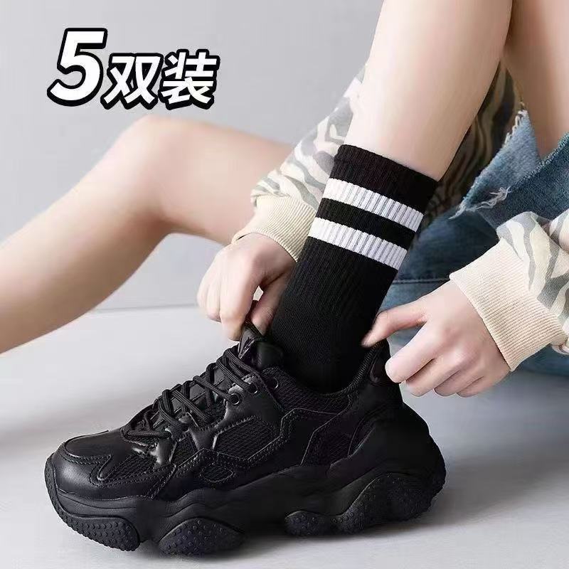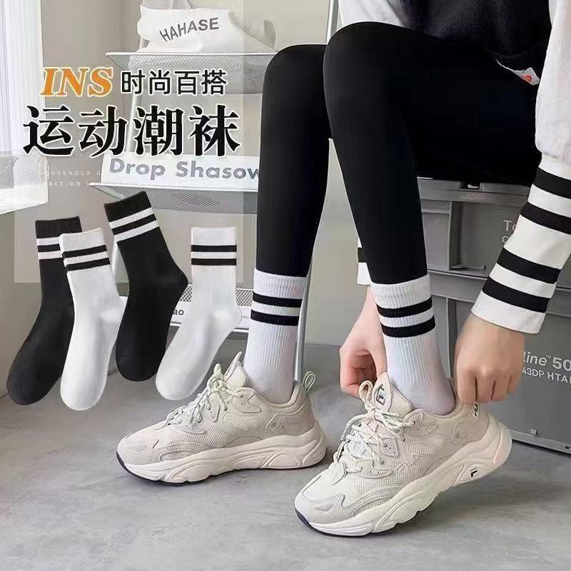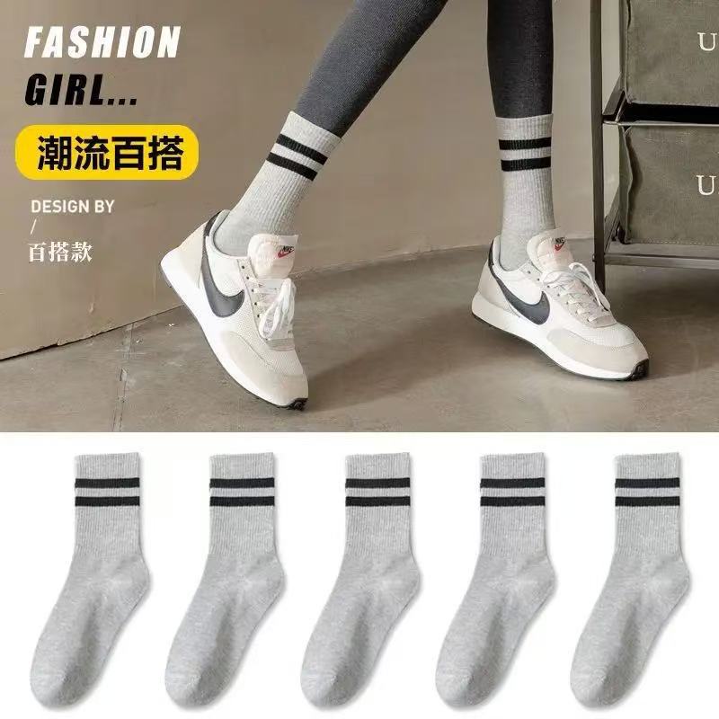 두 개의 바 숙녀 중간 튜브 양말 캐주얼 다목적 병렬 바 새로운 여성 중간 튜브 양말 학생 양말 Zhuji 도매스토어 가기