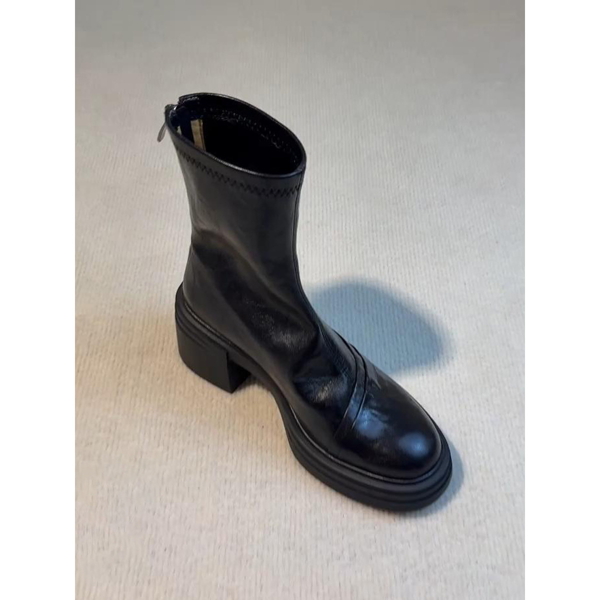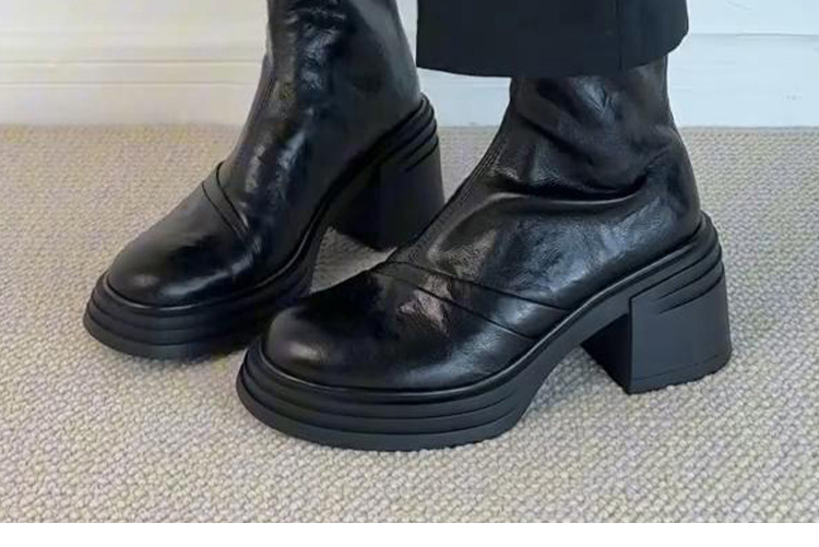 당일 출고 가능 ~ 마틴 부츠 여성의 가을과 겨울 둥근 머리 두꺼운 뒤꿈치 고조 작은 복고풍 기질 얇은 부츠 짧은 부츠스토어 가기