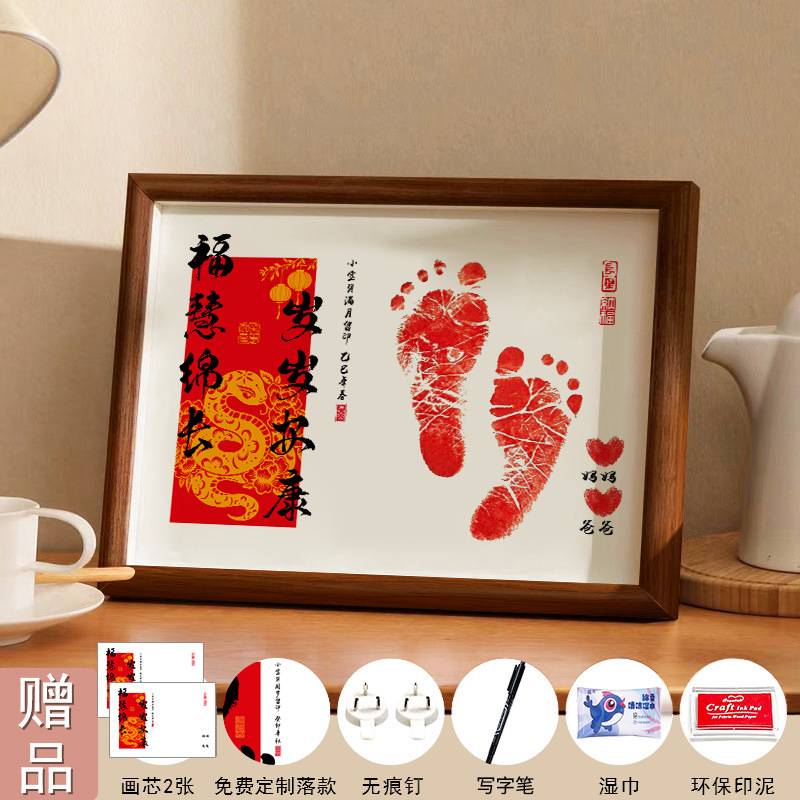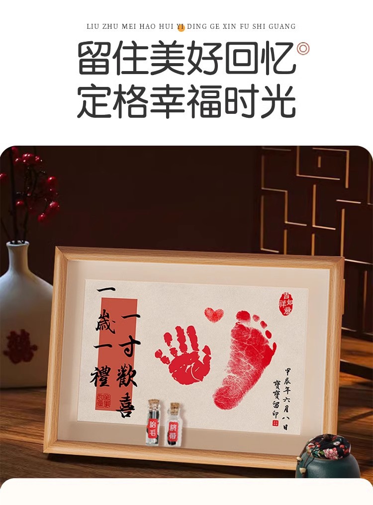 손과 발 인쇄 아기 보름달 백일 손과 발 인쇄 그림 프레임 이해 Zhou Li 기념식 용품 기념품 소품 도매스토어 가기