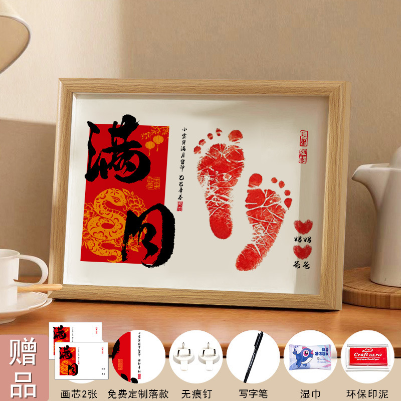 손과 발 인쇄 아기 보름달 백일 손과 발 인쇄 그림 프레임 이해 Zhou Li 기념식 용품 기념품 소품 도매