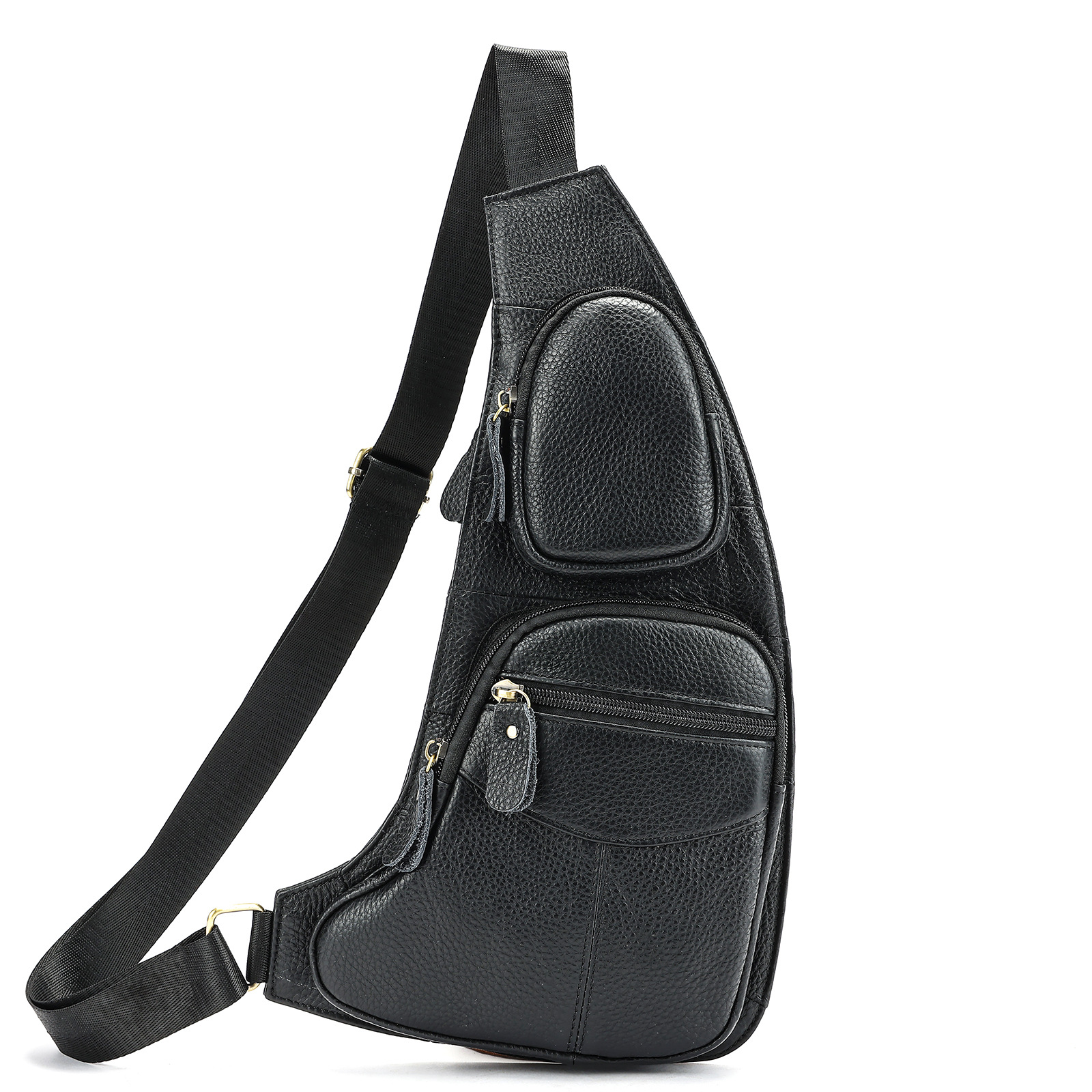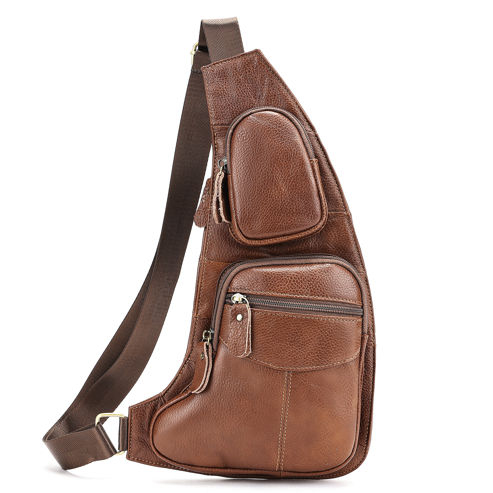 NIUCUNZH 탑 레이어 Cowhide 스포츠 가슴 가방 정품 가죽 사첼 남성 캐주얼 크로스 바디 백 멀티 포켓 크로스 바디 백스토어 가기