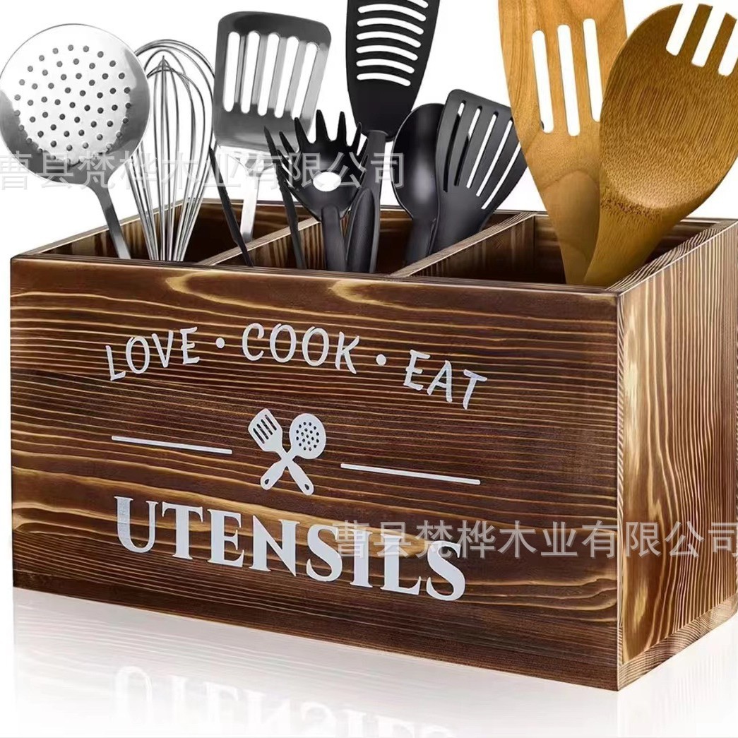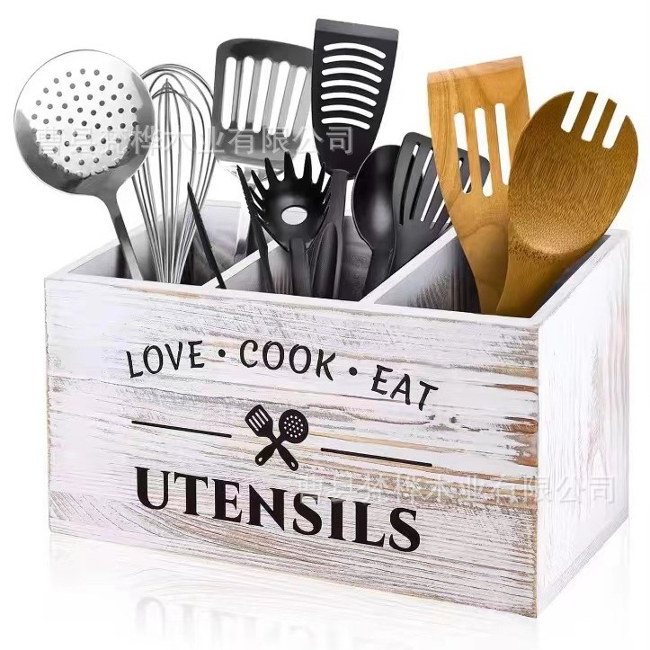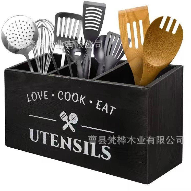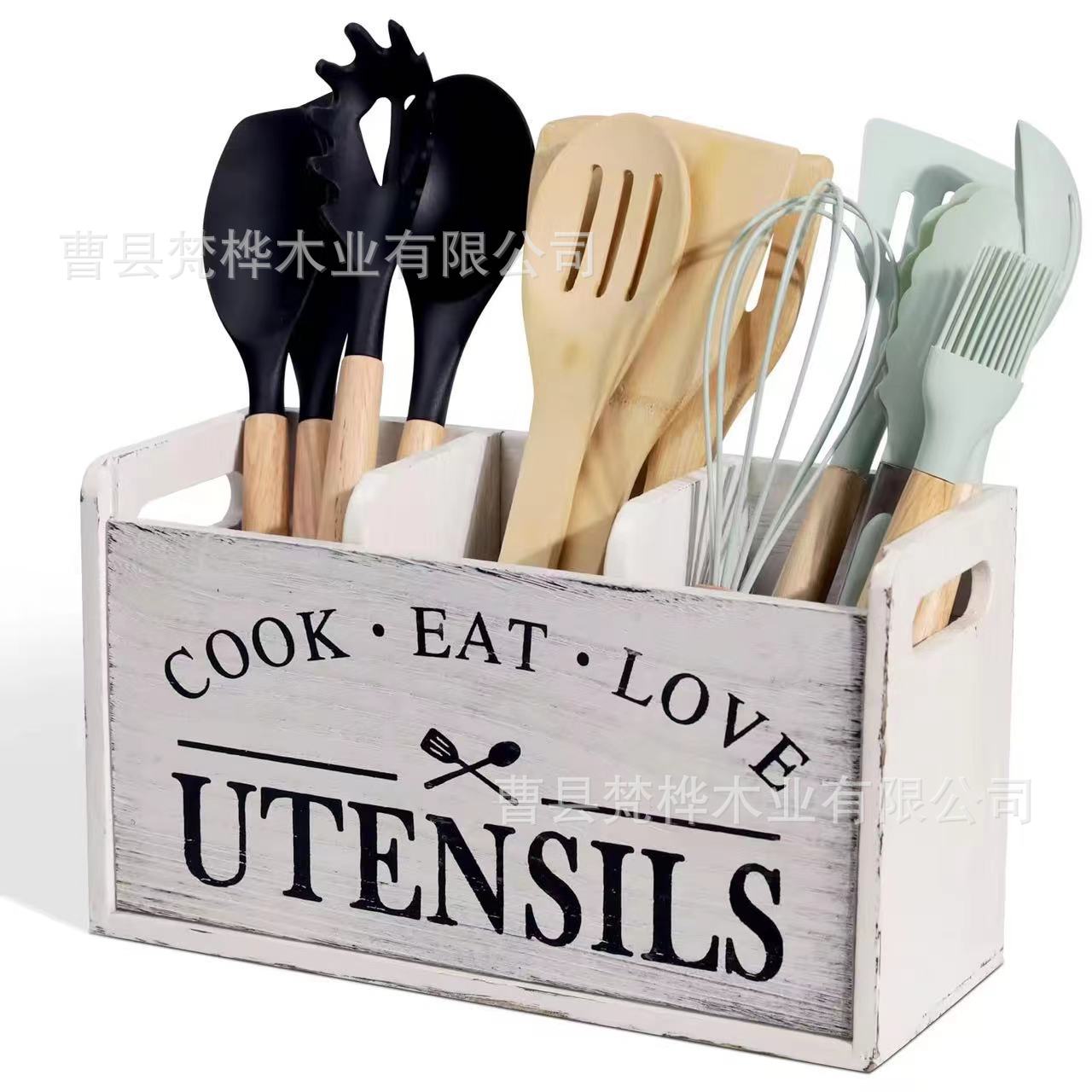 국경 간 나무 식기 보관 상자 주방 조리대 나이프와 포크 분류 저장 상자 카운터 요리 도구 마무리 브래킷