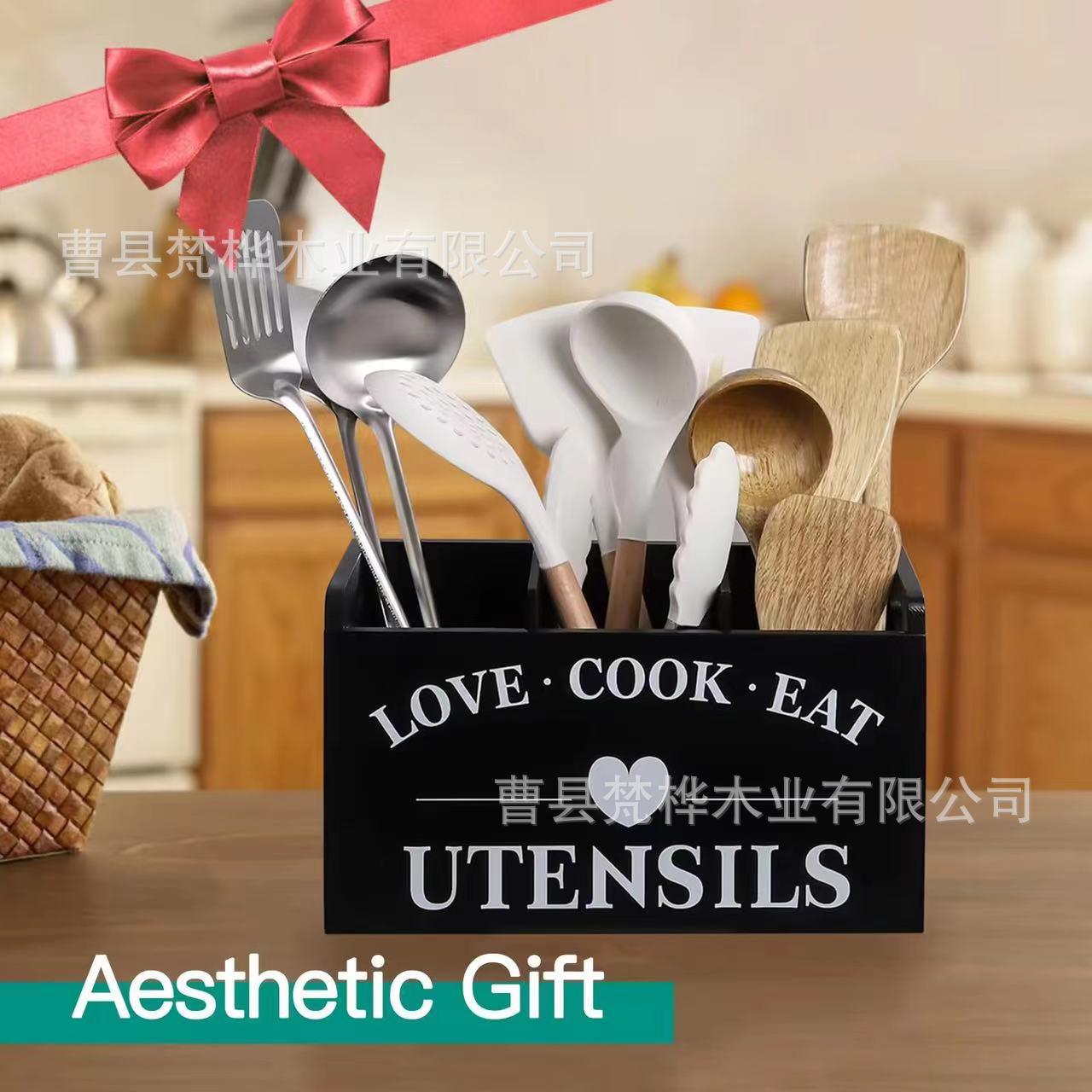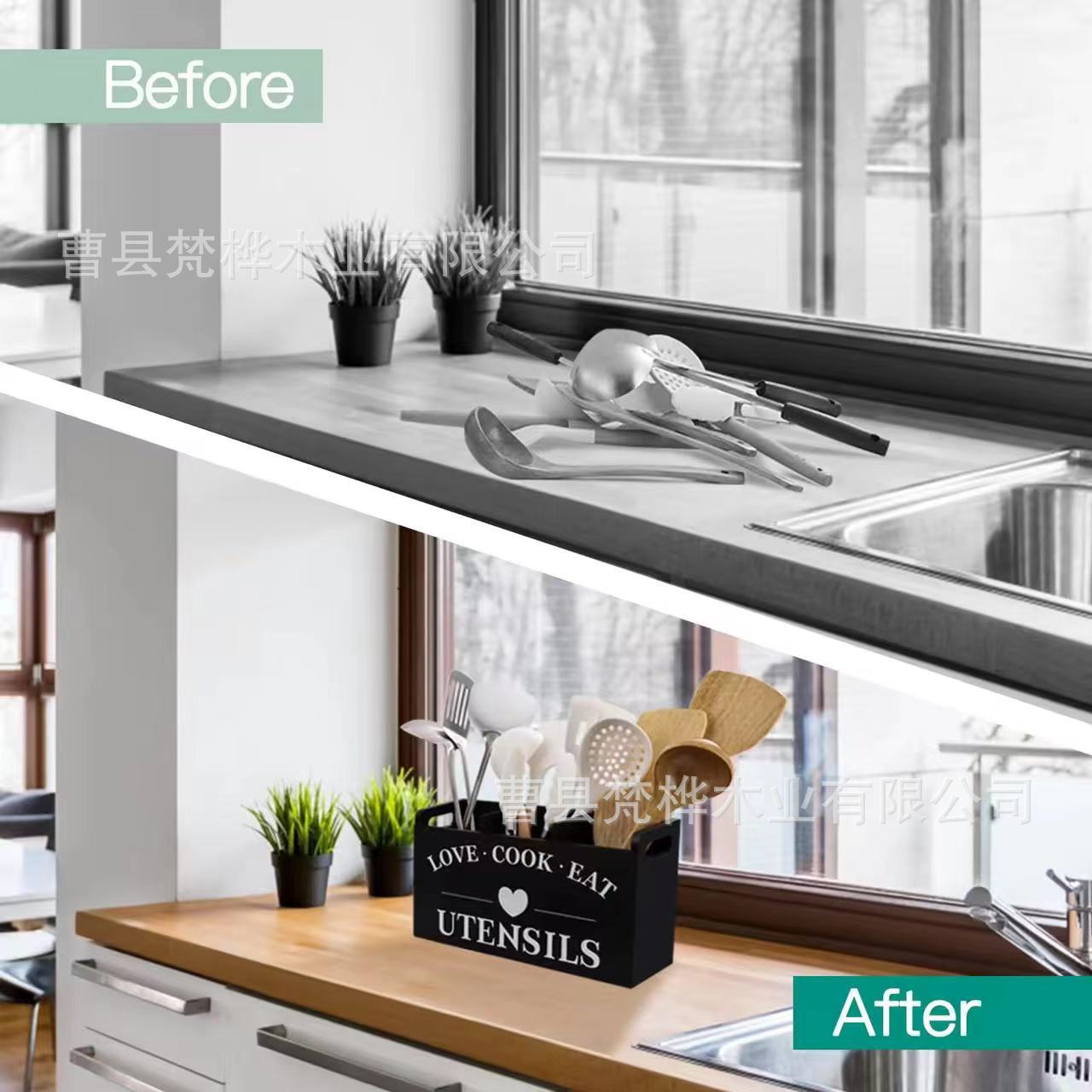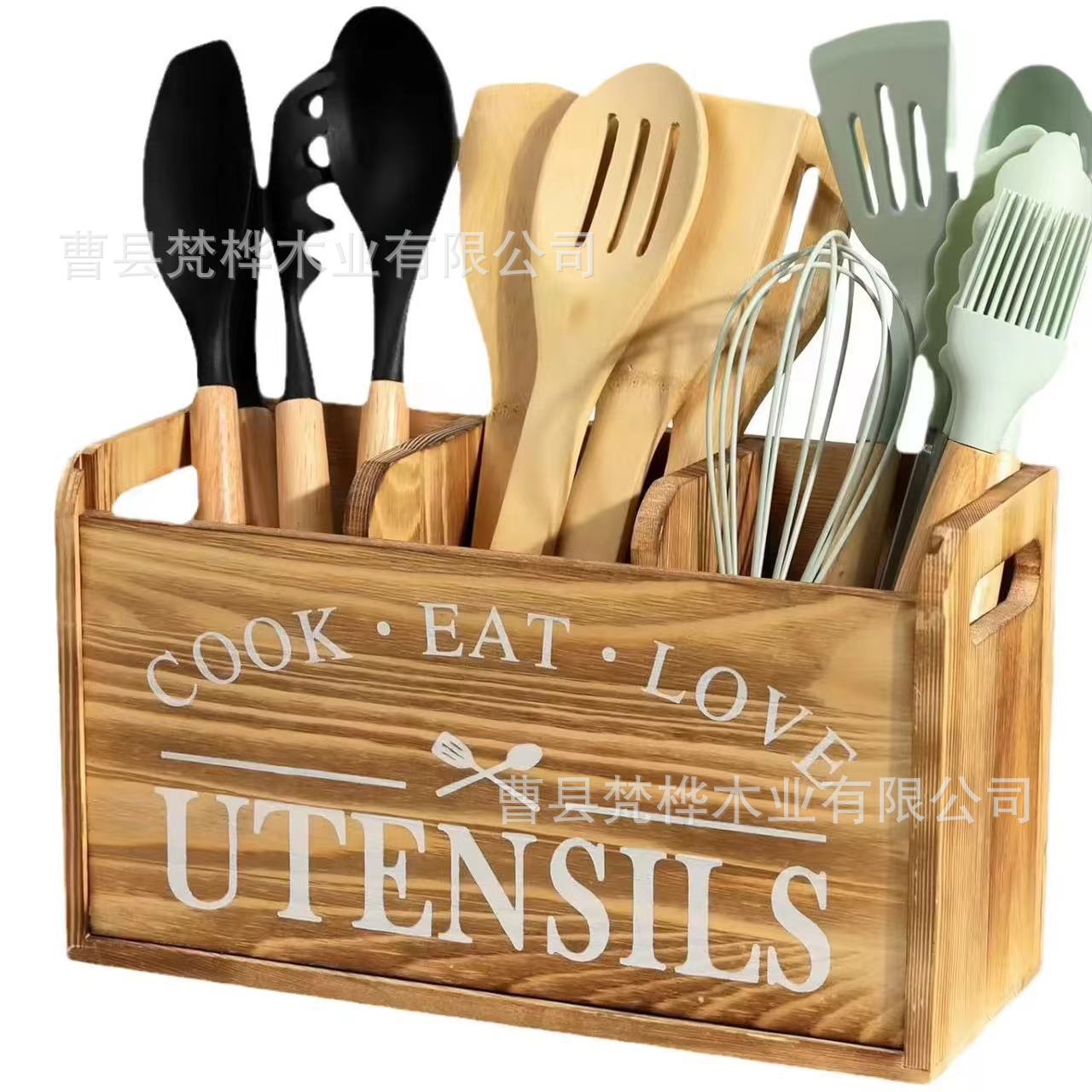 국경 간 나무 식기 보관 상자 주방 조리대 나이프와 포크 분류 저장 상자 카운터 요리 도구 마무리 브래킷