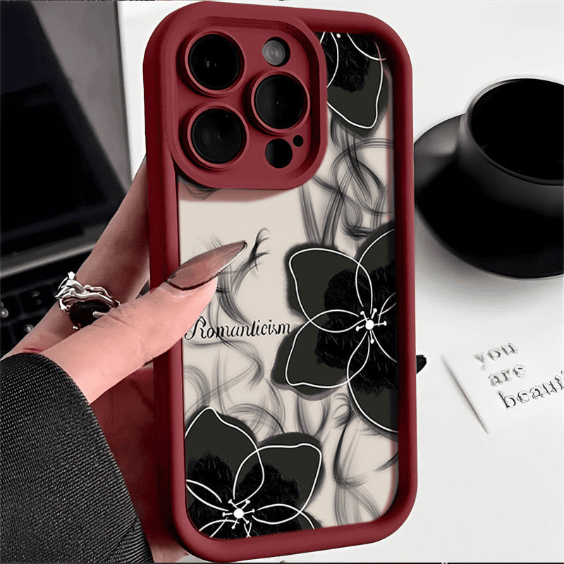 애플 16promax 휴대 전화 케이스 iPhone15plus 안티-가을 14 틈새 13 국경 12 에 대한 잉크 꽃