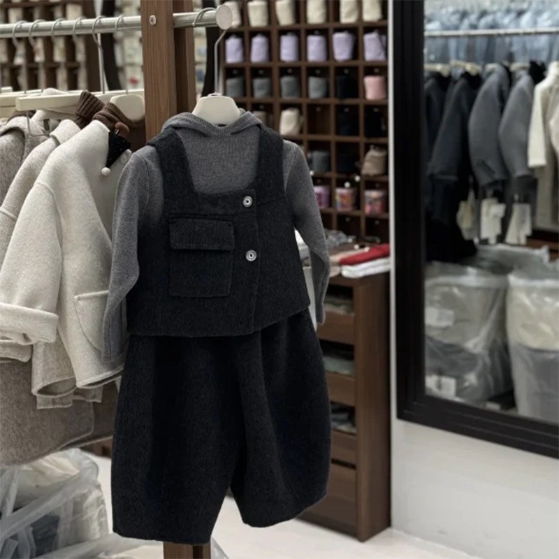 아동복 소년 소녀 우아한 세트 어린이 감각베이스 탑 모직 조끼 와이드 레그 바지 3 피스 세트