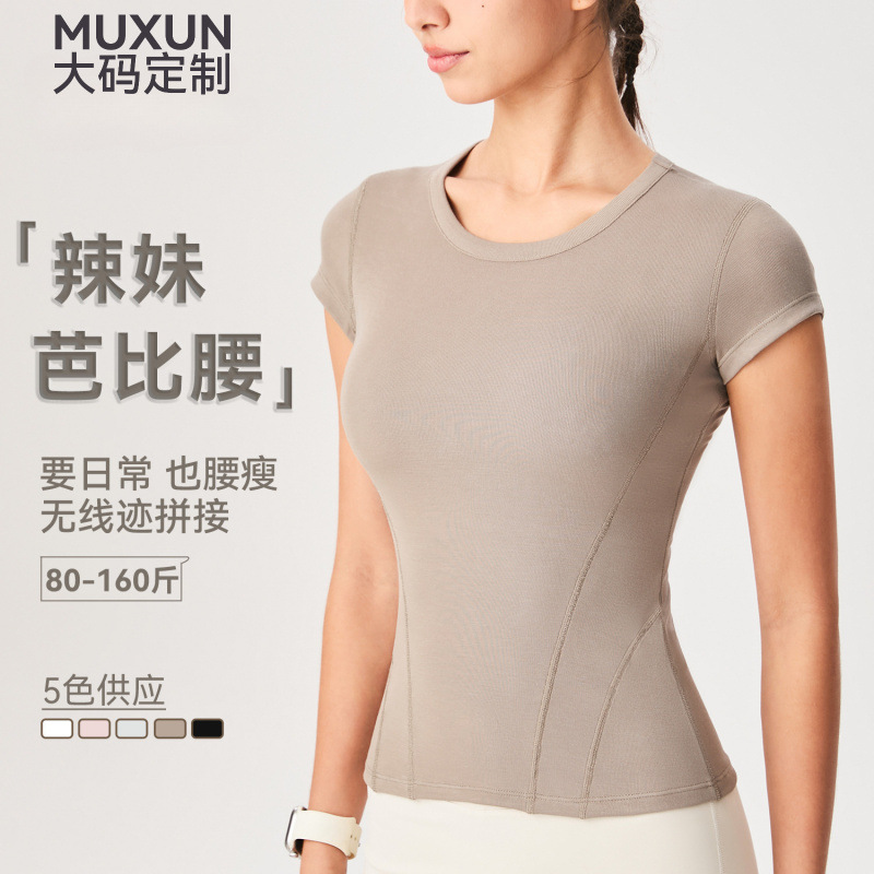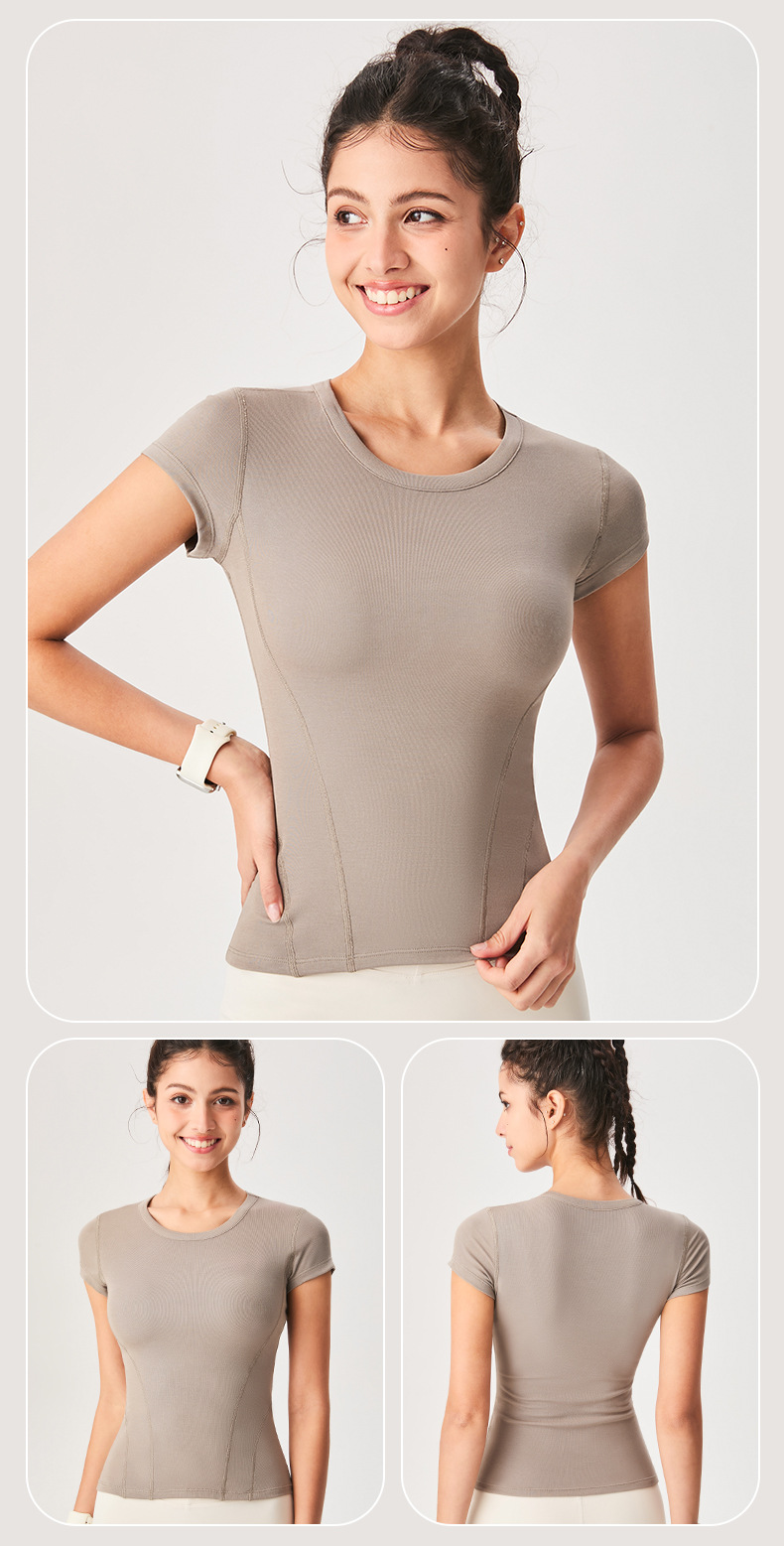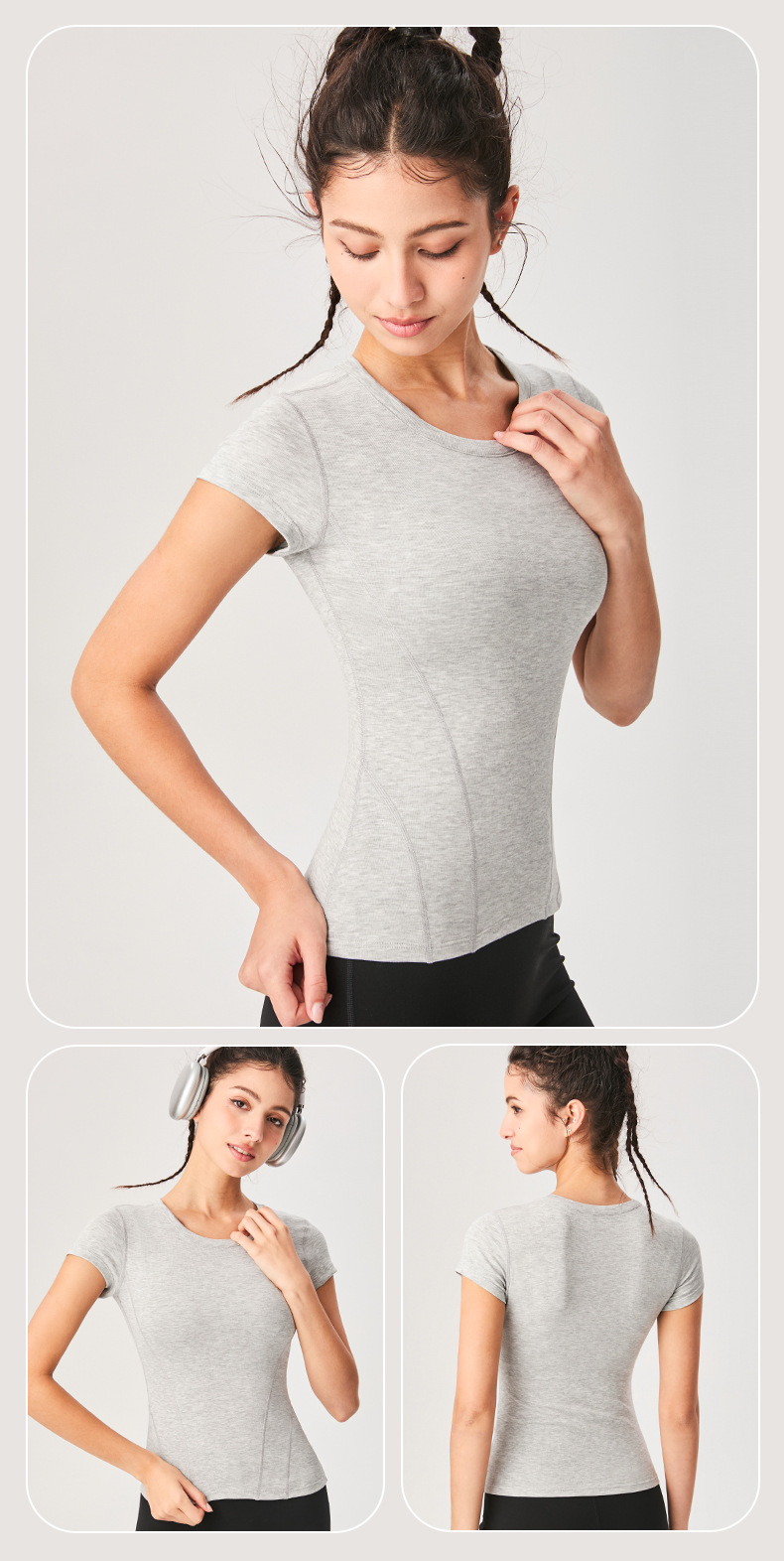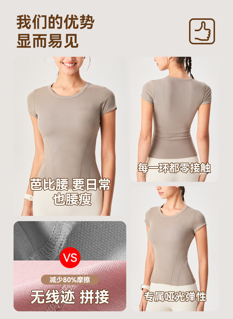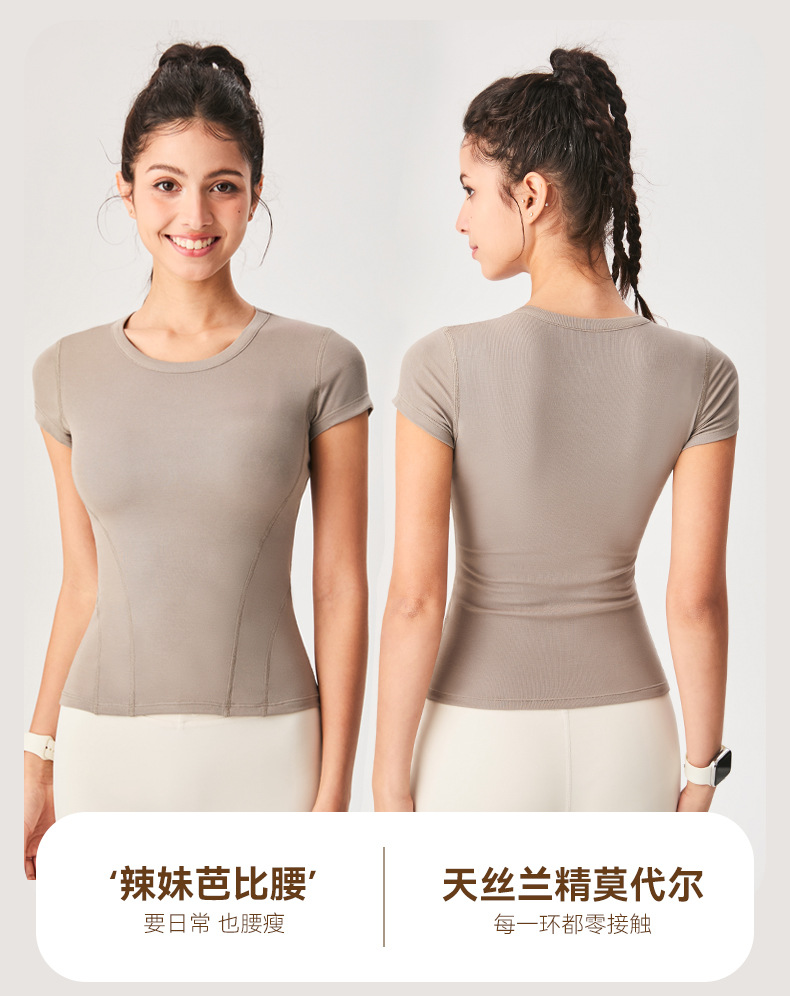 스포츠 반팔 요가 세트 여성용 슬림 슬리밍 피트니스 세트 러닝 땀 흡수성 타이트 허리 요가 탑 티셔츠스토어 가기