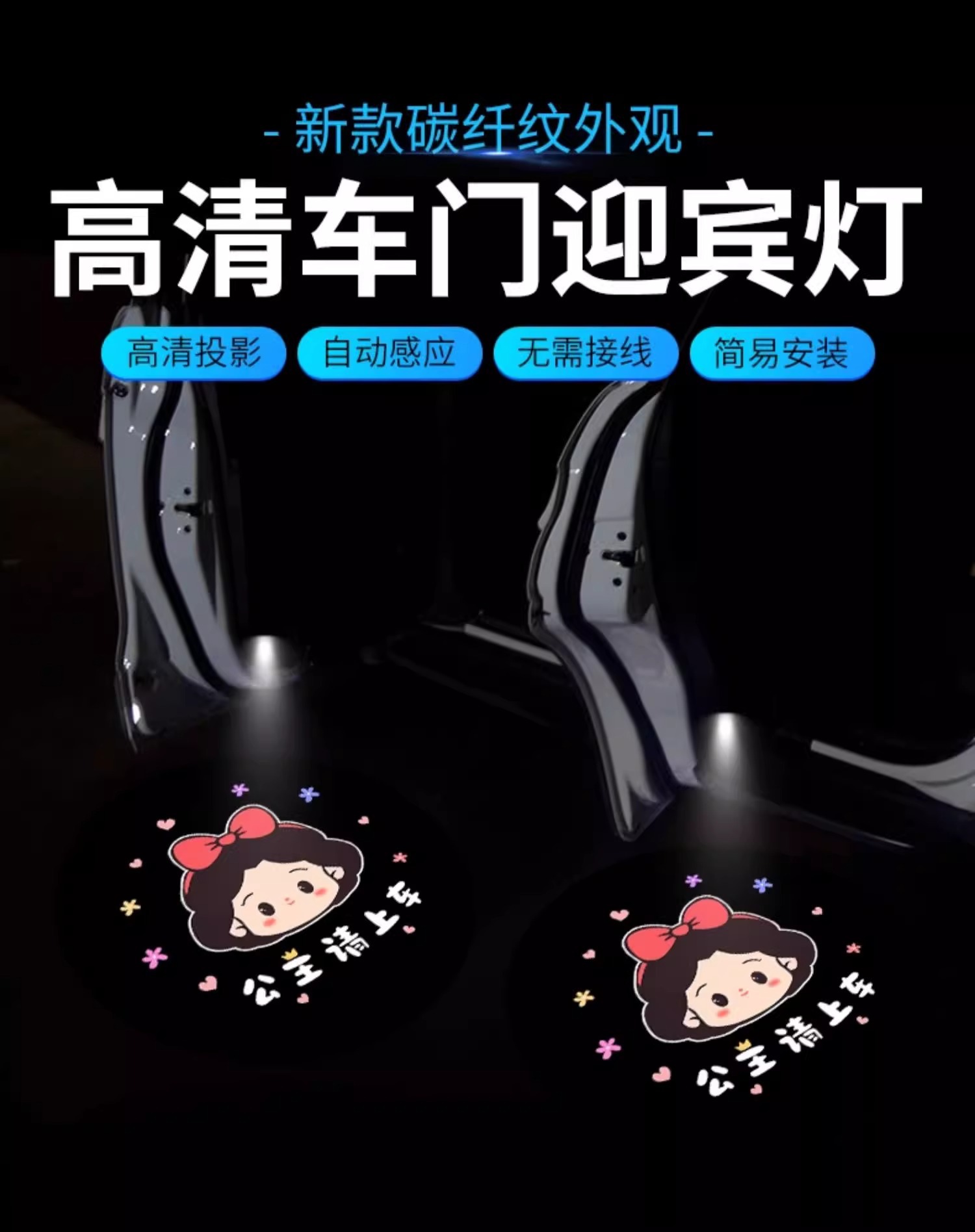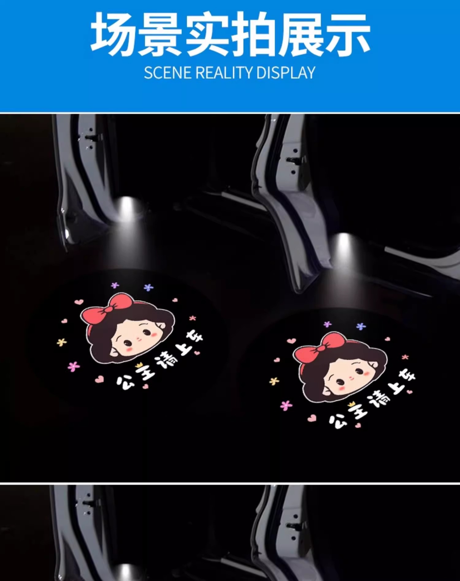 공주, 버스 환영 라이트 도어 라이트 유도 자동차 프로젝터 전기 자동차 분위기 장식 용품