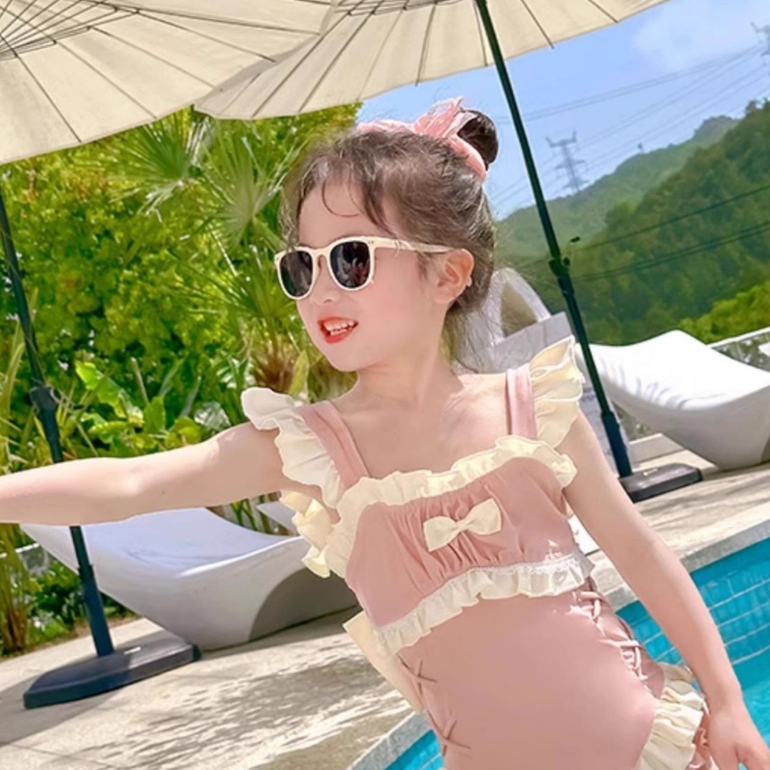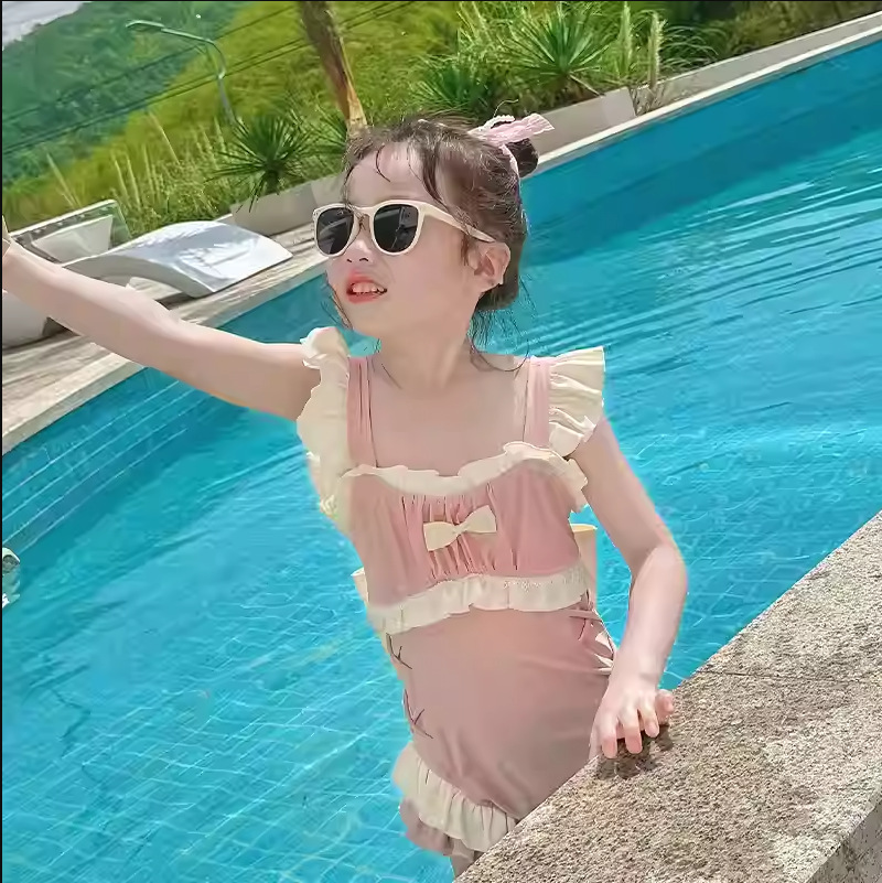 여자 아기 2025 새로운 서양식 아기 수영 세트 온천 러플 여성용 수영복 바지 공주 수영